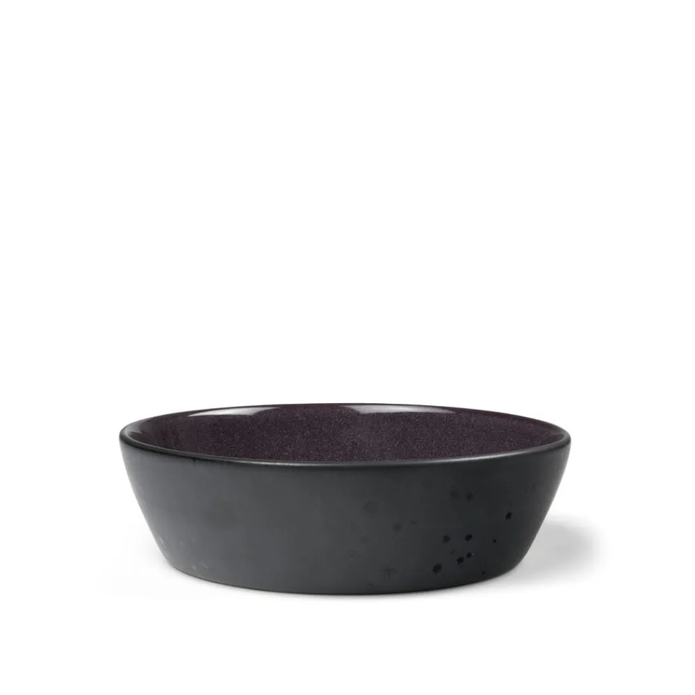 BITZ Suppeskål fremstillet i mat, sort stentøj med blank lilla glasur på indersiden. Skålen er 18 cm i diameter. BITZ robuste stentøjsskåle fås i flere størrelser og i mange fantastiske farvestillinger med flot, reaktiv glasur, der fremhæver stentøjets glød.