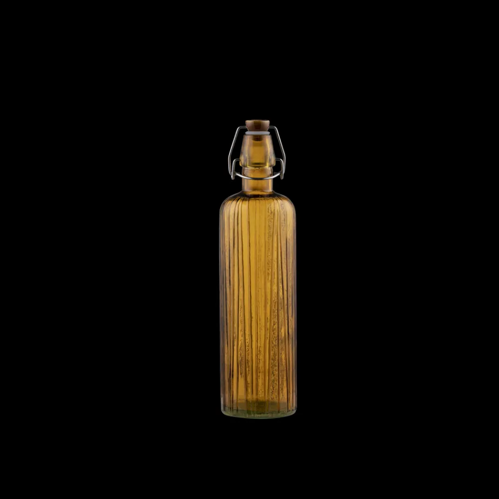 Flot vandflaske i glas med et lækkert, rustikt udtryk. Flaskens patentlukning har en keramikprop med blank, reaktiv glasur i amber, der passer til glassets toning. Håndopvask anbefales. Ved køb af flasken støtter du udsatte børn i verdens fattigste områder.