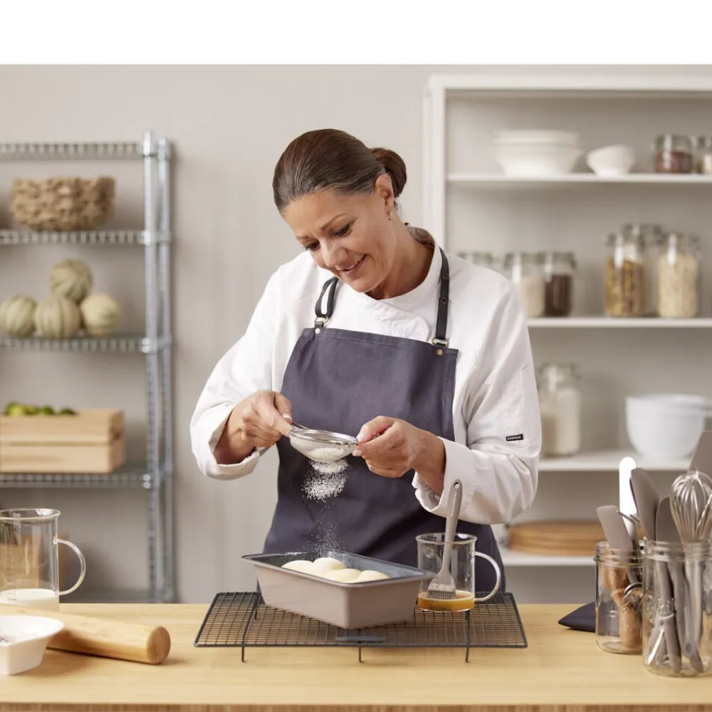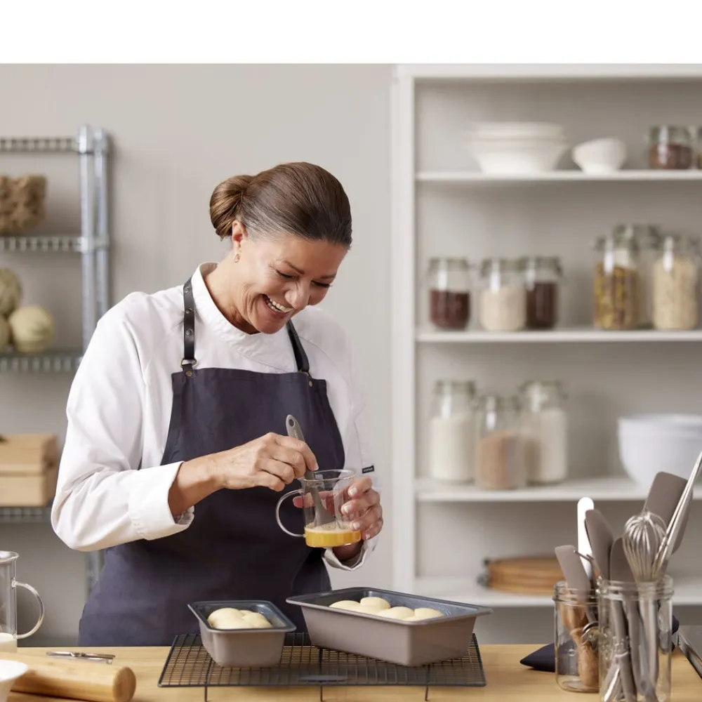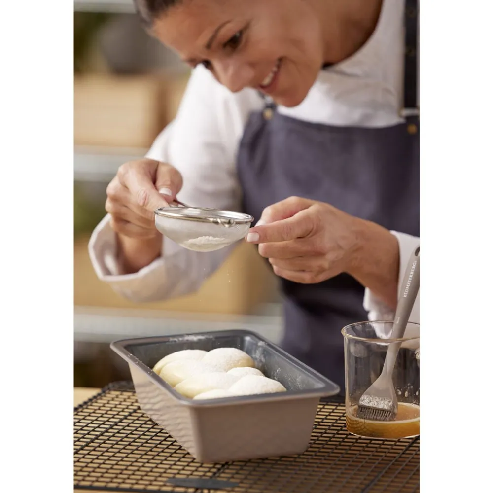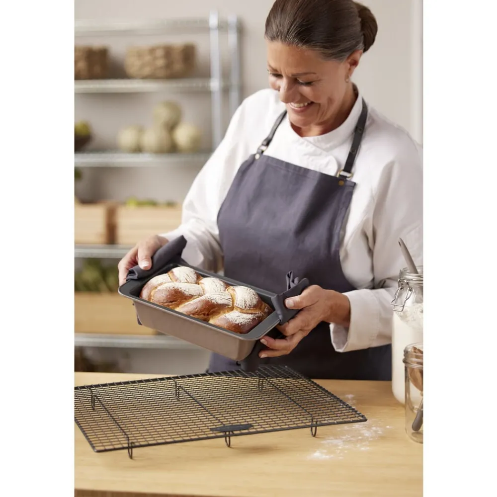 Brødform i ekstra kraftigt kvalitetsstål med en tykkelse på 0,5 mm og en praktisk non-stick-belægning, som får brød og kager til at slippe formen lettere. Designet er elegant med en smuk latte farve på udvendig side. Formen kan anvendes til fx rugbrød, franskbrød og andre spændende madbrød samt lækre rørekager, der kan glæde hele familien. Bør vaskes før brug første gang. Brødformen kan tåle temperaturer op til max 230 °C.