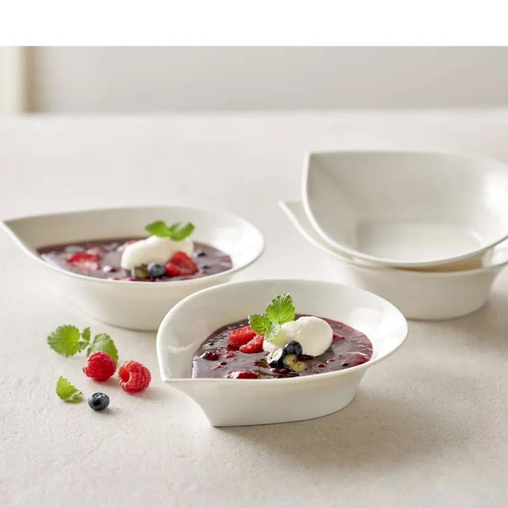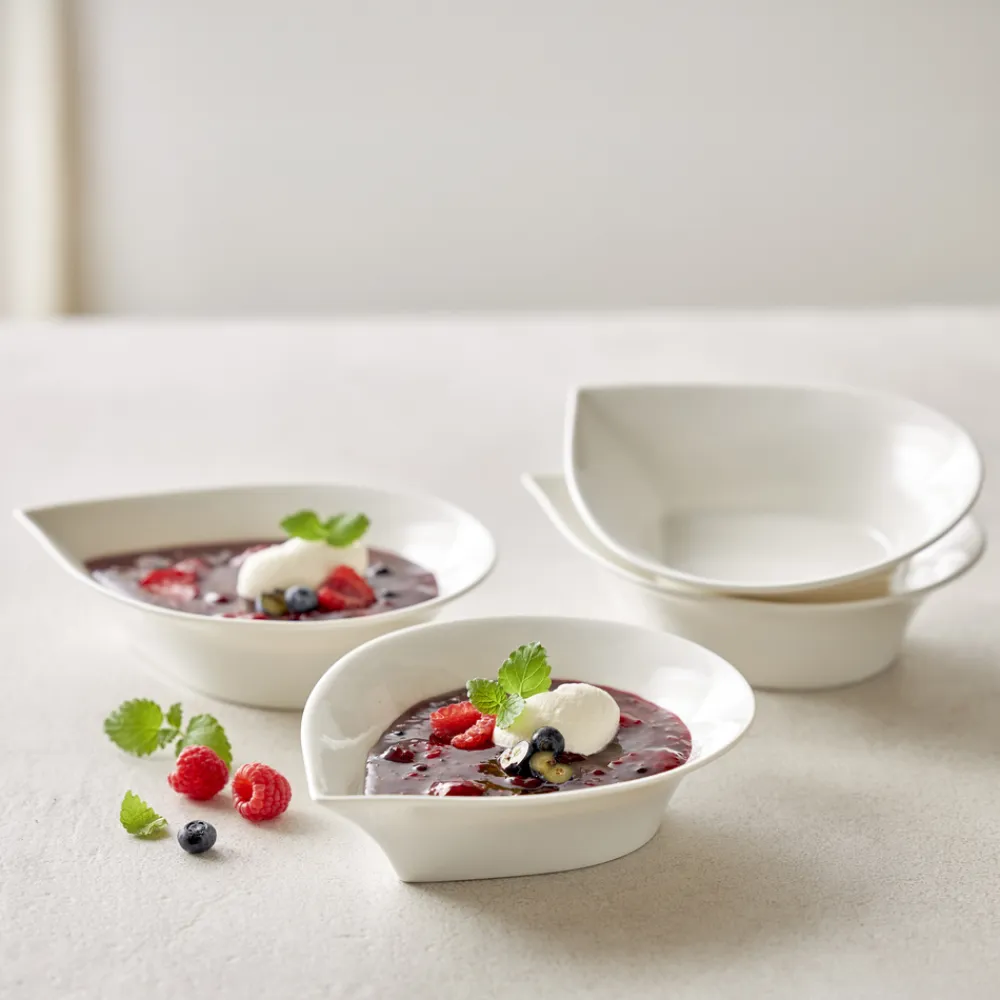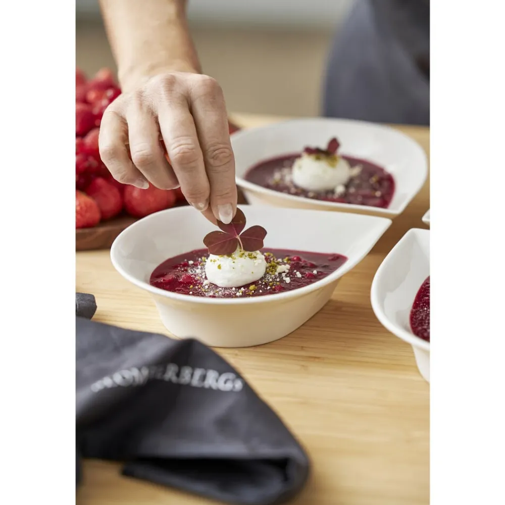 Eksklusiv, dråbeformede porcelænsskåle, der er et spændende supplement til dit service. Meget anvendelig som både skåle og dybe tallerkener. Der kan serveres alt fra iskold jordbærsuppe til havregryn med friske jordbær og cacao nibs. Flere skåle sammen er også velegnede med forskelligt tilbehør til en salatbuffet eller lignende.