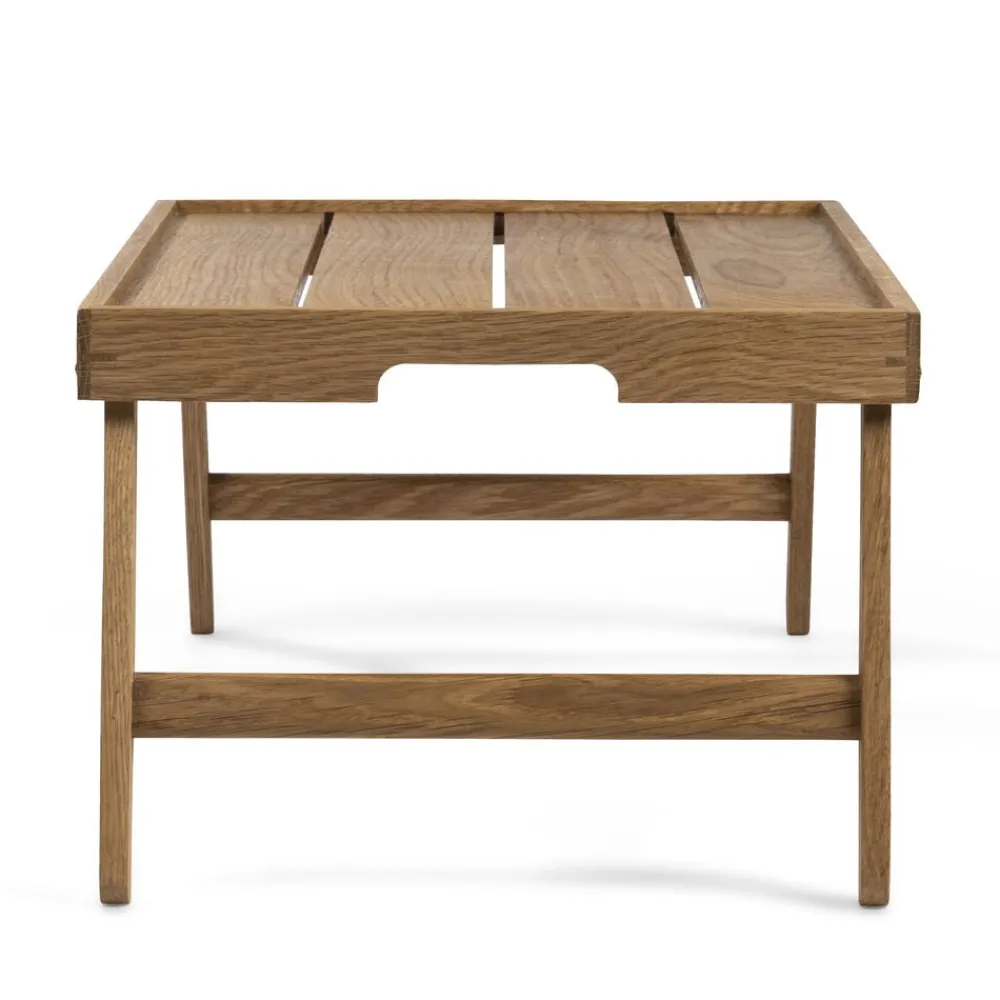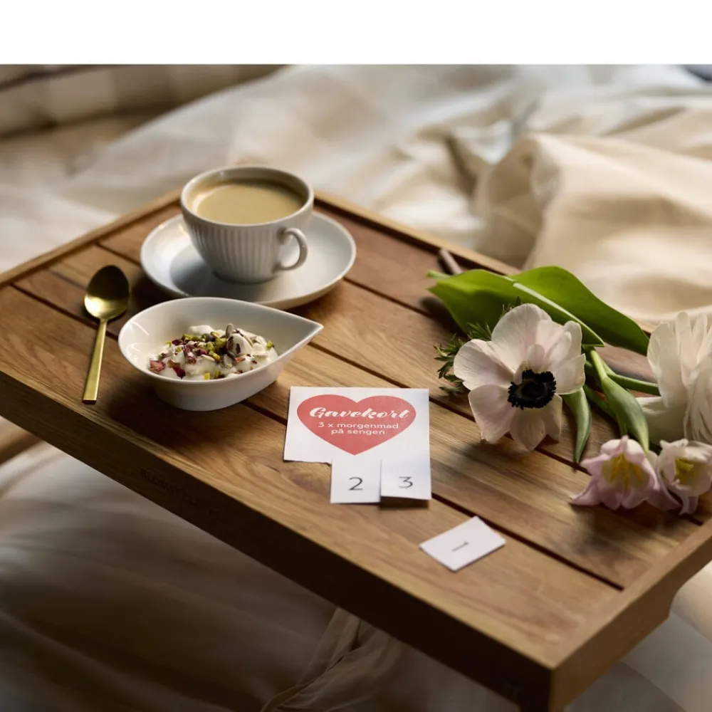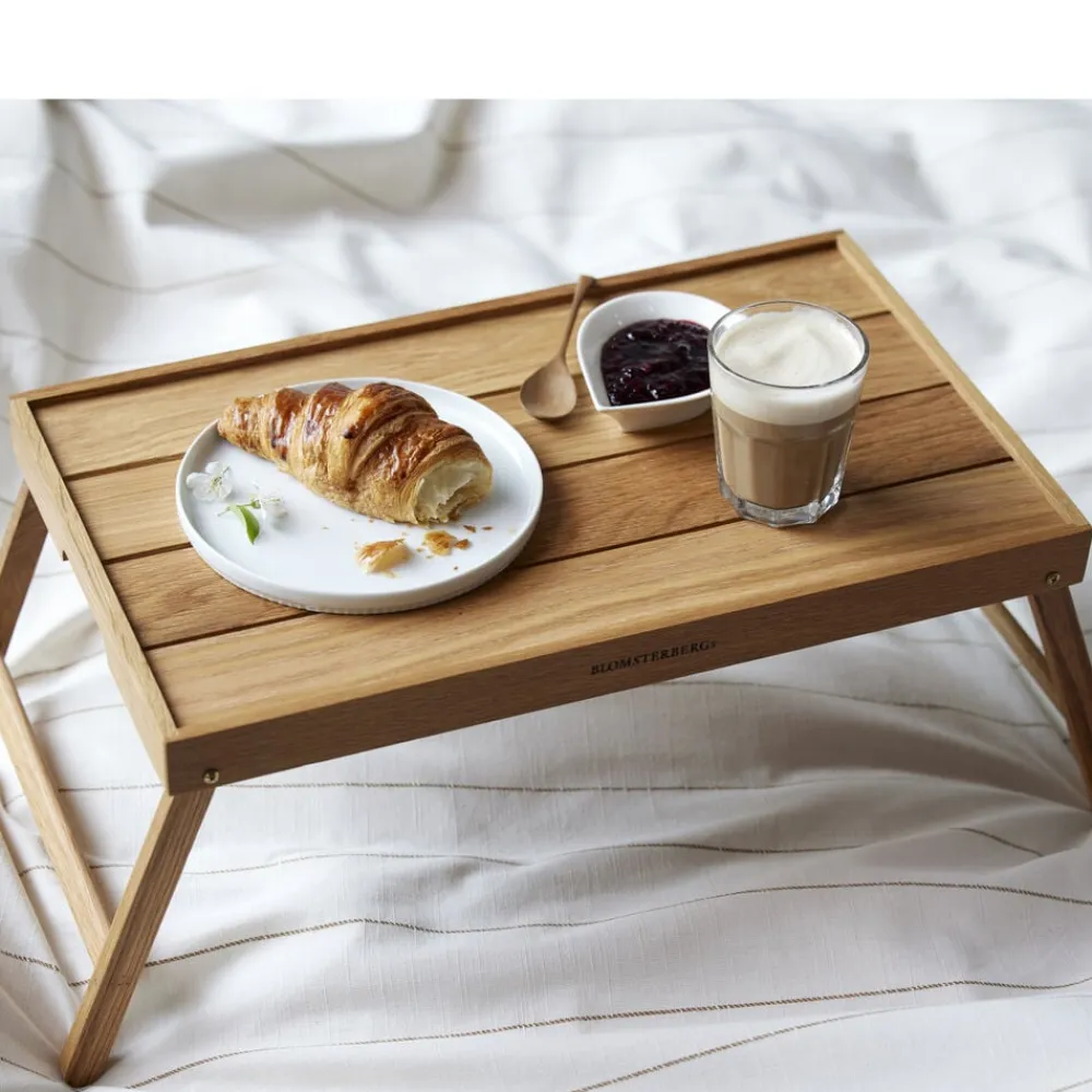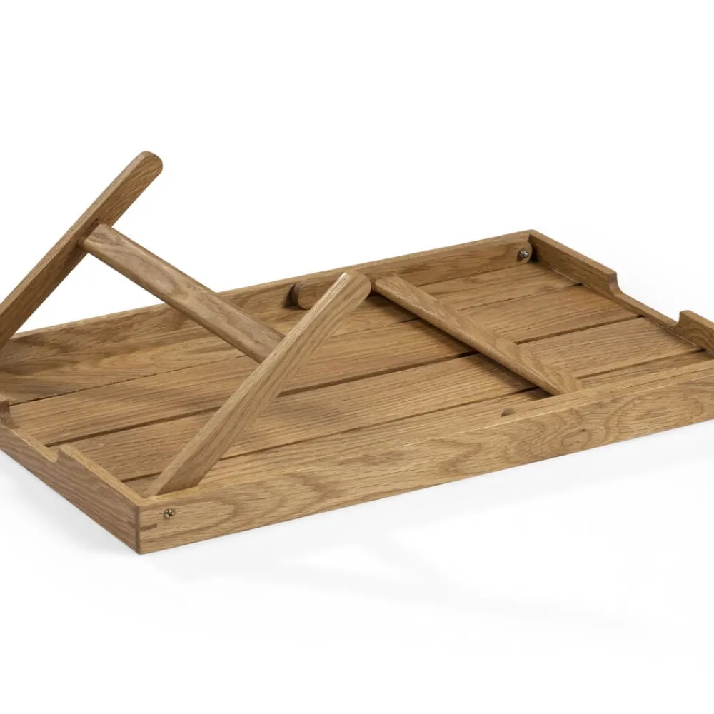 Serverings-/sengebakke med sammenklappelige ben. Server dejlig morgenmad på sengen eller nyd en afslappet stund i sofaen. Bakken aftørres med en fugtig klud og kan løbende vedligeholdes med madolie. Varen er produceret i FSC®-certificeret egetræ (FSC-C166612).