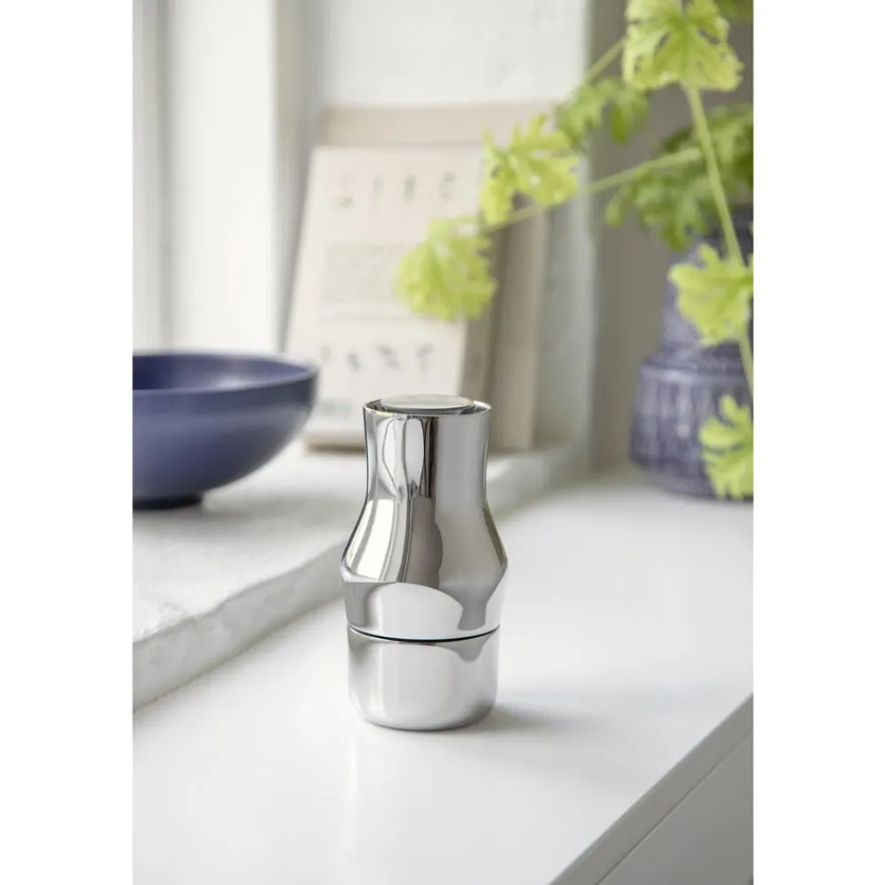 Den smukke, minimalistiske kværn i blankpoleret rustfrit stål bidrager til en elegant sammenhæng i borddækningen. Den keramiske CrushGrind® mekanisme er placeret i kværnens top, og på den måde sikrer det gennemtænkte design, at der ikke drysser krydderier på bordet, når kværnen sættes ned. Placeringen af kværnemekanismen giver flere fordele: tyngdekraften fører naturligt krydderierne ind i kværnen og giver en mere ensartet formaling. Samtidig ligger kværnen godt i hånden, så du har et behageligt greb og bedre kontrol. Med fire indstillinger fra fin til grov er det også nemt at justere krydringen efter forskellige præferencer.