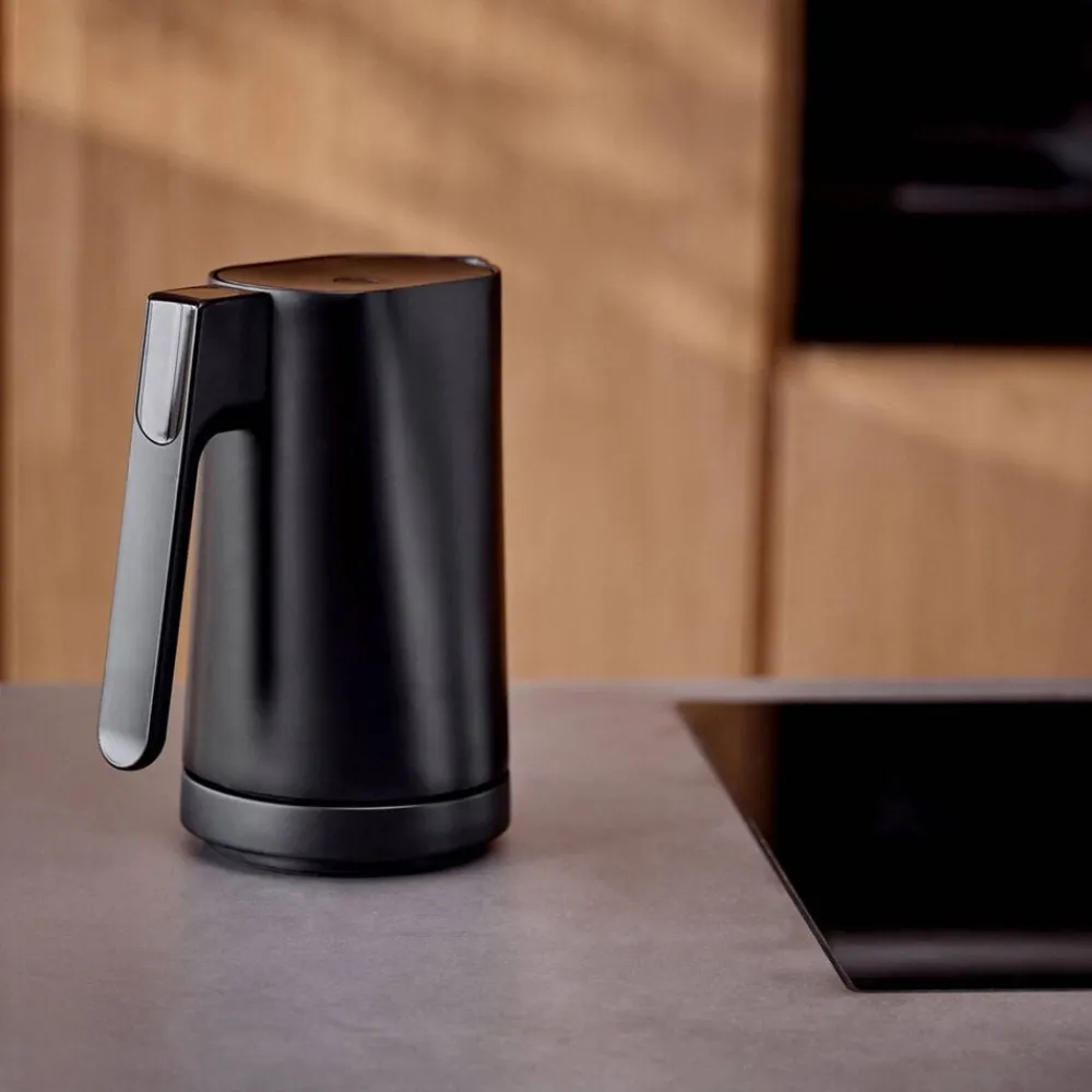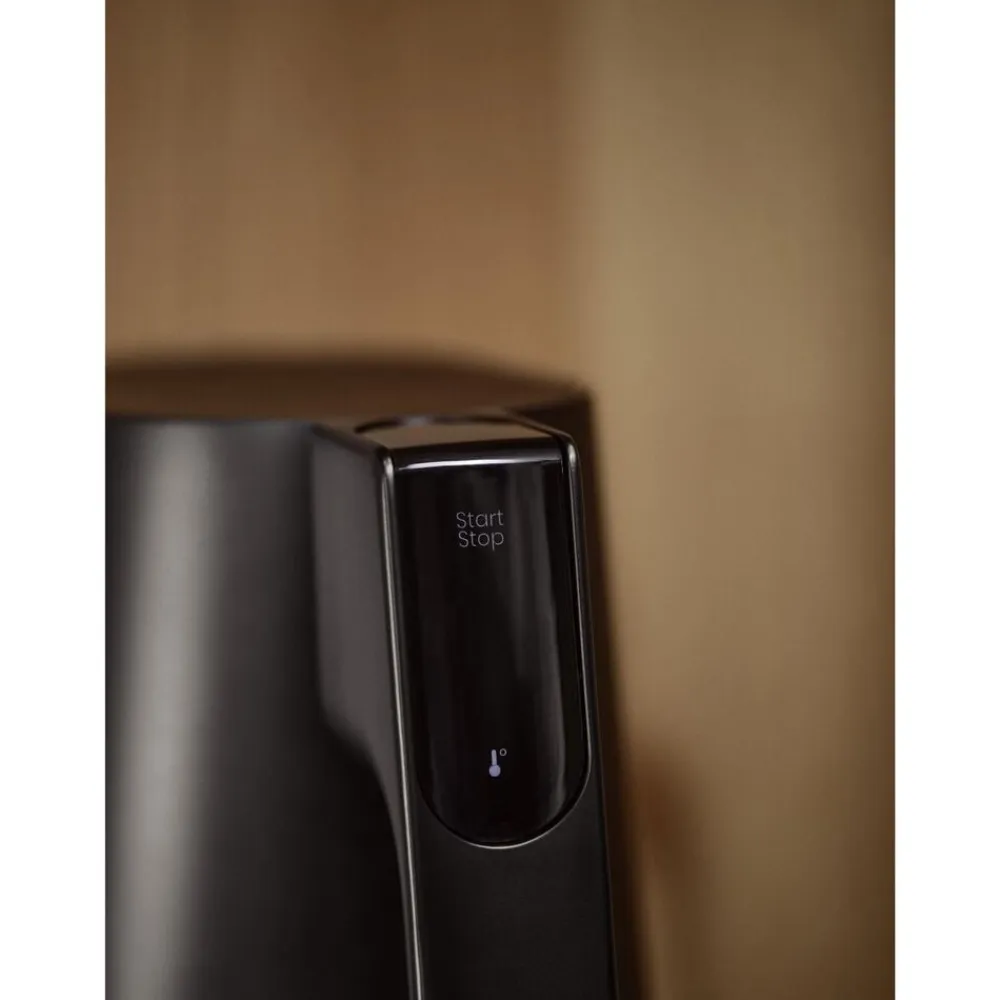 Jacob Jensen elkedel sætter en ny standard, når det gælder opvarmning af vand til din kaffe eller te. Den er fremstillet af solide materialer i en elegant form. Elkedlens display vækkes til live, når din hånd nærmer sig, og går i dvale, når kedlen ikke er i brug. Den har en kapacitet på 1,2 liter vand, og med syv forudindstillede temperaturindstillinger, der spænder fra 70 °C til 100 °C, kan temperaturen styres via touch displayet. Det digitale display gør det nemt at overvåge den aktuelle vandtemperatur, mens en blid tone signalerer, når dit vand har nået den ønskede temperatur. Derudover sikrer funktionen “Keep Warm”, at vandet bevarer den valgte temperatur, indtil kedlen fjernes fra basen.