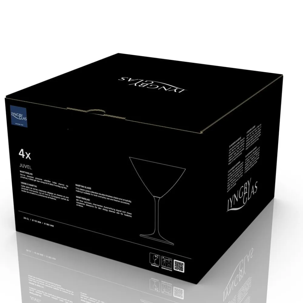 Juvel Martiniglas i den kendte klassiske og stilfulde facon. Server James Bonds yndlingscocktail i det smukke, klare glas, som naturligvis også løfter en cosmopolitan og utallige andre cocktails til et højere niveau. 28 cl. 4 stk. 17,5 cm.