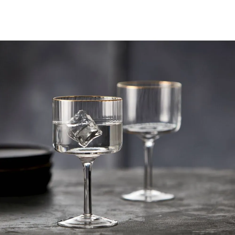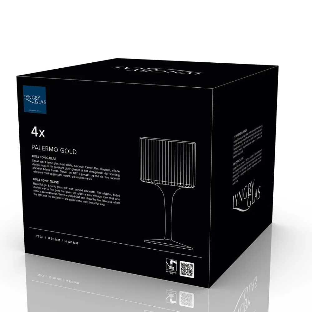 Smukt gin & tonic-glas. Det elegante, riflede design med en fin guldkant giver glasset et flot vintagelook, der samtidig afspejler tidens trends. Server en G&T i glasset og lad de fine facetter reflektere lyset og glassets indhold på smukkeste vis.