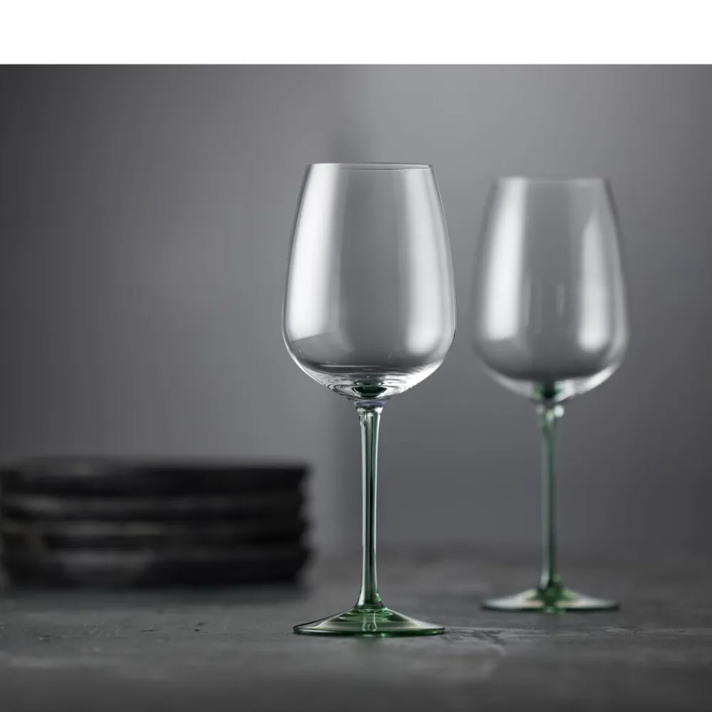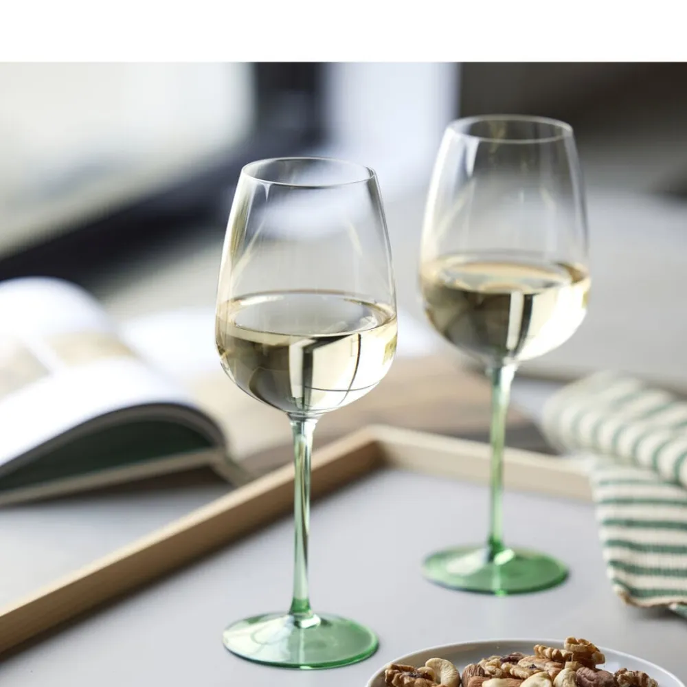 De flotte mundblæste vinglas egner sig godt til borddækning i hverdagen samt festlige sammenkomster, hvor bordet gerne må fyldes med liv og farver. 53 cl.