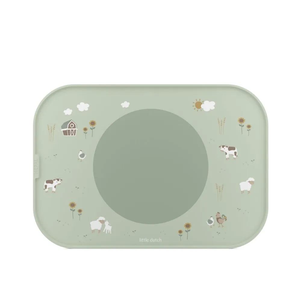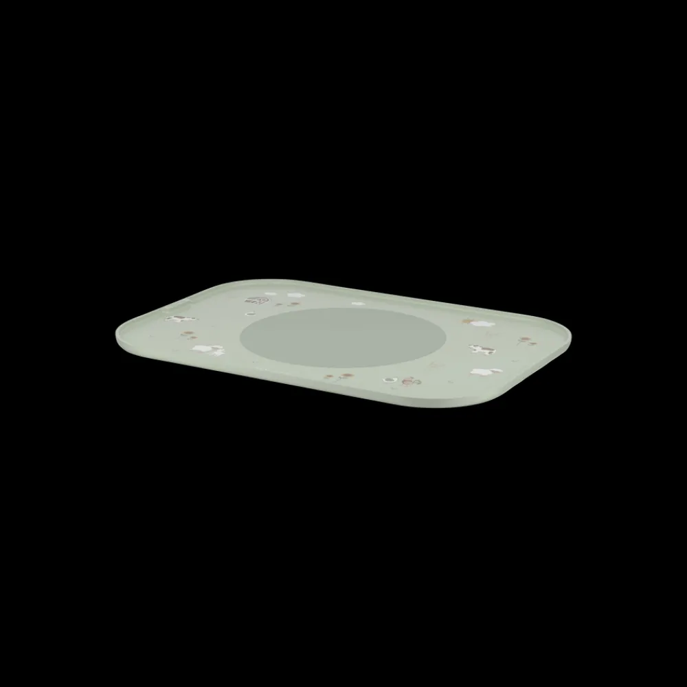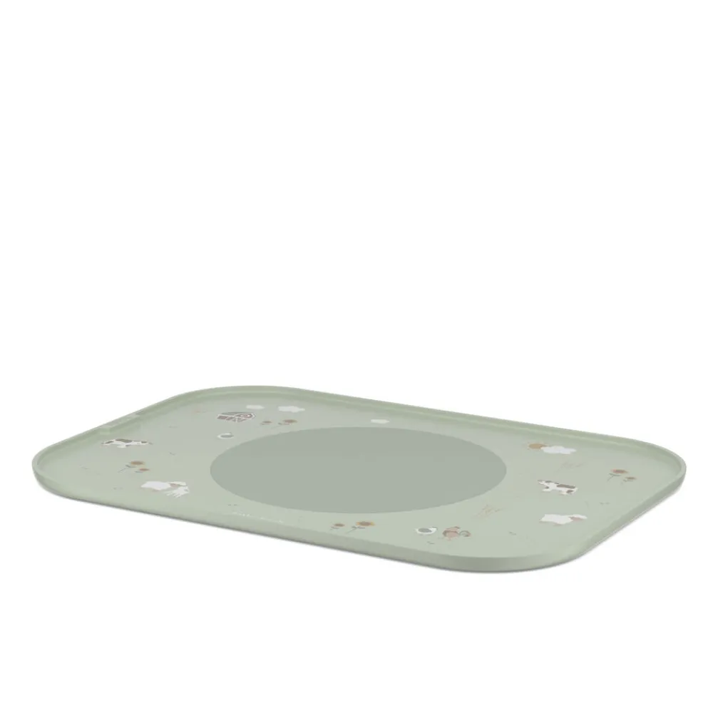 Den robuste dækkeserviet kan fungere både som bakke og dækkeserviet – en detalje, der giver perfekt mening i daglig brug. Dækkeservietten er fremstillet af PP-plast og udstyret med en skridsikker cirkel af silikone, der holder tallerkenen på plads, mens barnet spiser. Cirklen kan fjernes, og dermed bliver rengøringen endnu nemmere. Vaskes nemt i opvaskemaskinen. 28 x 40 cm.