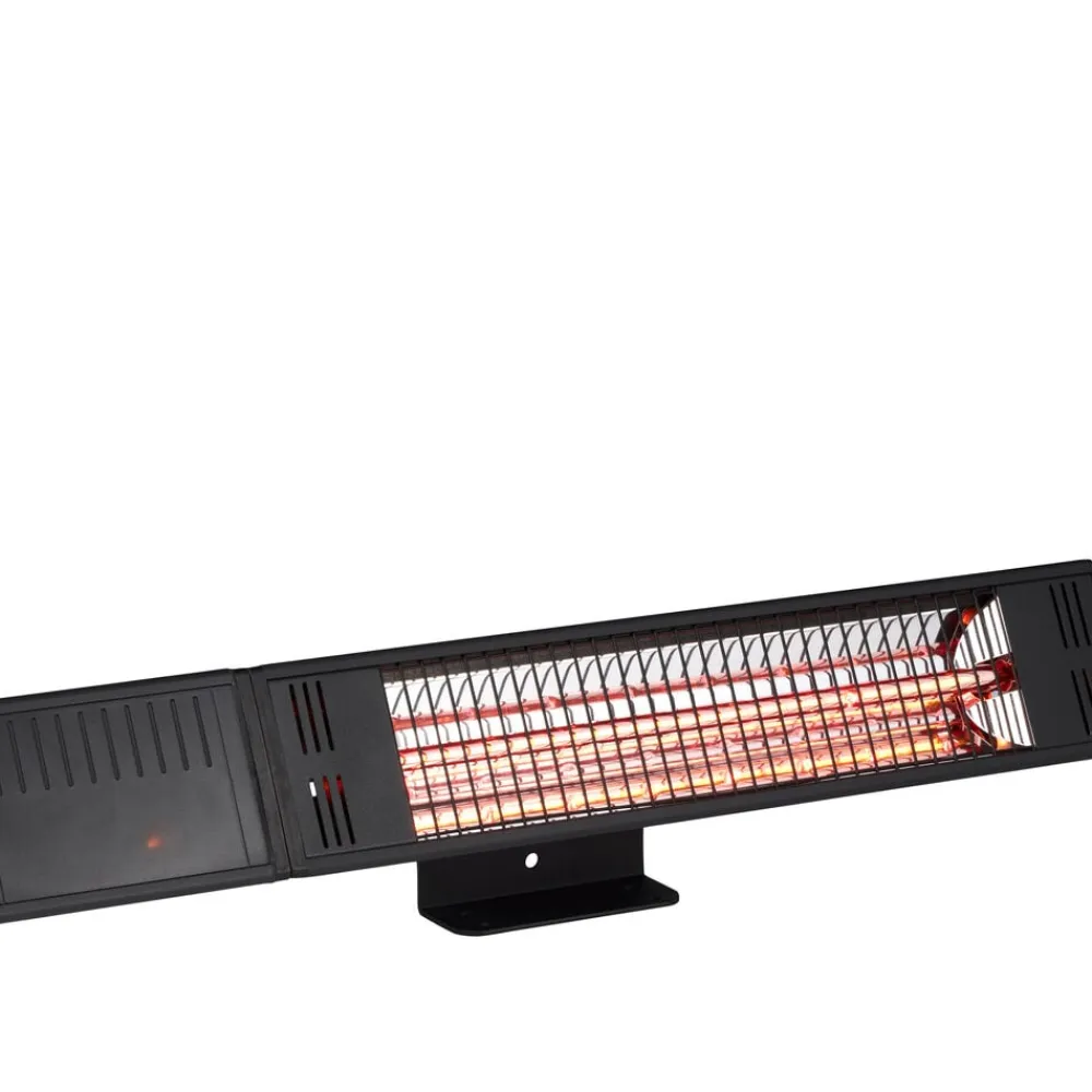 Med denne terrassevarmer bliver det nemmere at forlænge de hyggelige aftener udendørs. Terrassevarmeren er vægmonteret og udstyret med rosegold halogenrør, der er 25 % mere effektive end standard halogenrør. Nem at betjene med den medfølgende fjernbetjening, som kan bruges til at vælge mellem tre varmeniveauer på 500 watt, 1000 watt og 1500 watt. Til fjernbetjeningen skal du bruge et CR2025 batteri, som skal tilkøbes separat. Det medfølgende vægbeslag gør installationen let og ligetil, og det kompakte design gør den ideel til mindre terrasser og altaner, hvor pladsen er begrænset.