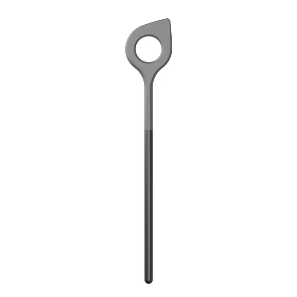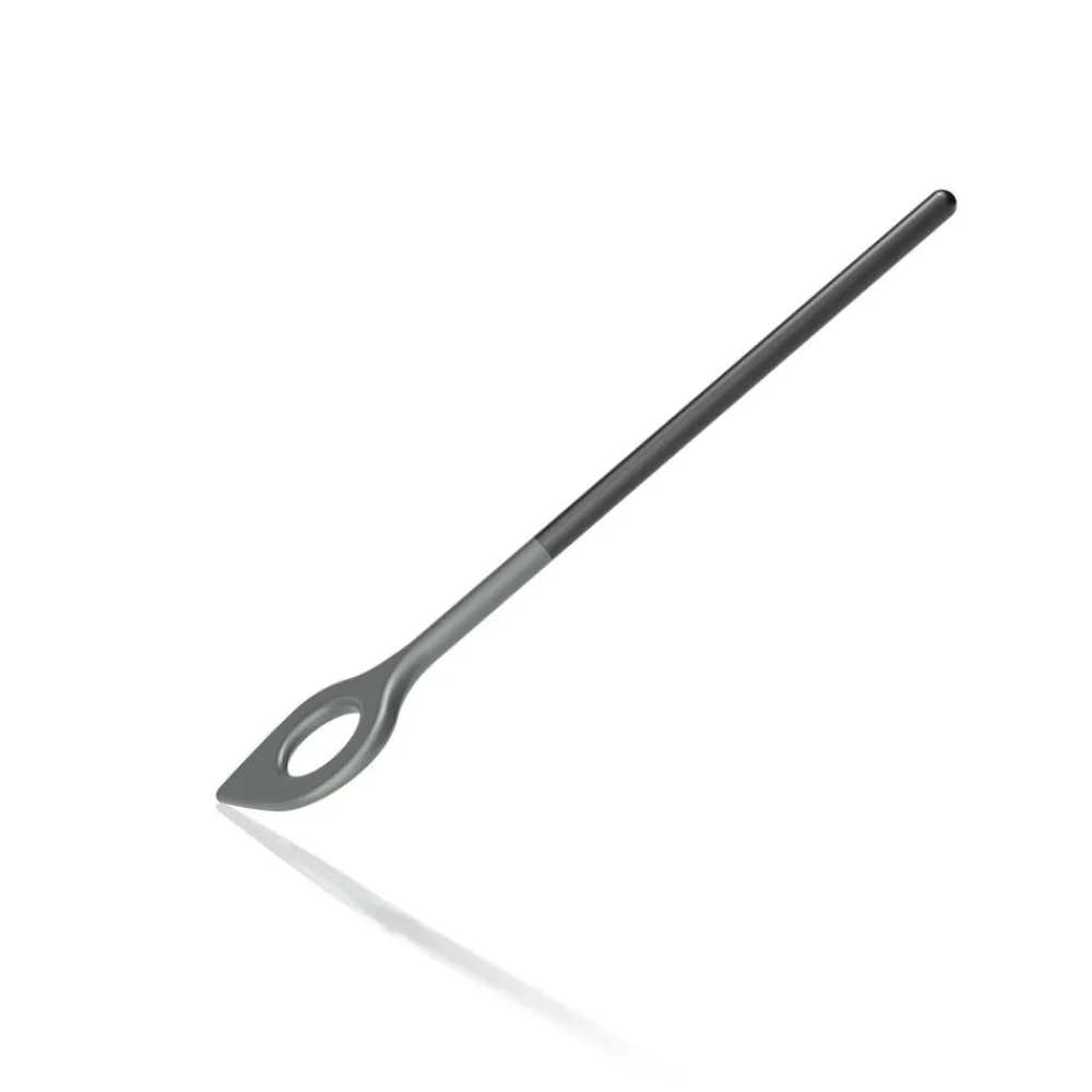 Røreske med hul og farvet skaft. 31 cm. Skeens hoved har en diameter på 5,5 mm, og spidsen i den ene side gør det nemmere at røre helt ind i kanten af grydens bund. Hullet i skeen gør den velegnet til fremstilling af bl.a. fars og dej og til at røre i ris. Fremstillet i nylon, der er skånsomt mod gryder og pander med belægning og tåler varme op til 220 grader C. Velegnet til opvaskemaskine.