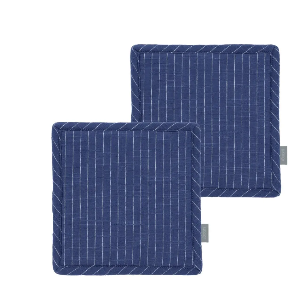Tekstilsættet i 5 dele i økologisk bomuld består af 2 viskestykker 50 x 70 cm, miniovnhandske 14 x 21 cm og 2 grydelapper 20 x 20 cm.