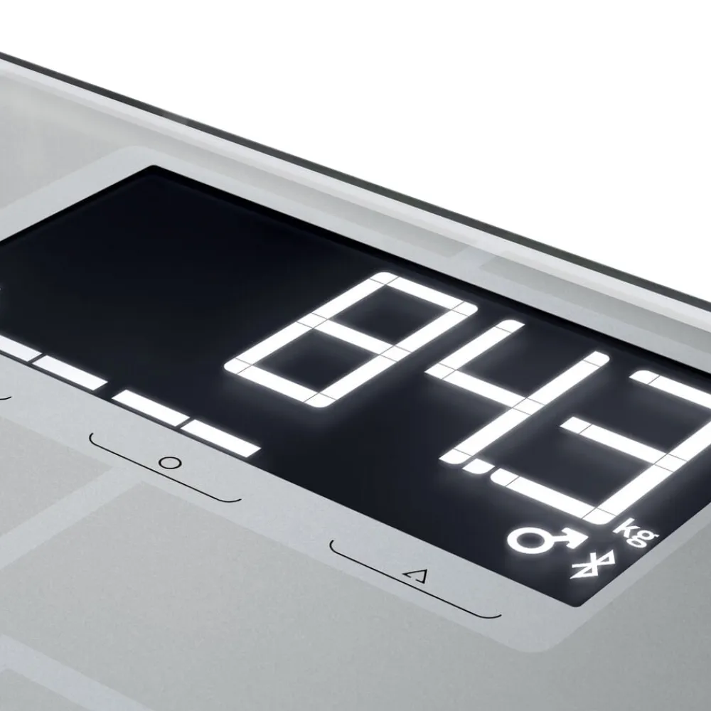Soehnle Shape Sense Connect 200 Kropsanalysevægt tænder automatisk og viser din vægt på et ekstra stort, sort LCD-display med hvide tal, der er meget nemme at aflæse.