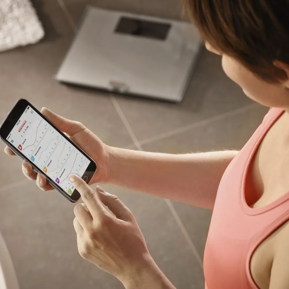 Dine målinger sendes til Soehnles S-Connect app til iOS og Android, hvor du får et nemt og overskueligt overblik over din kropsvægt, væske- og fedtprocent og muskelmasse. Vægtens atletmodus forhindrer, at muskelceller analyseres som fedtceller.