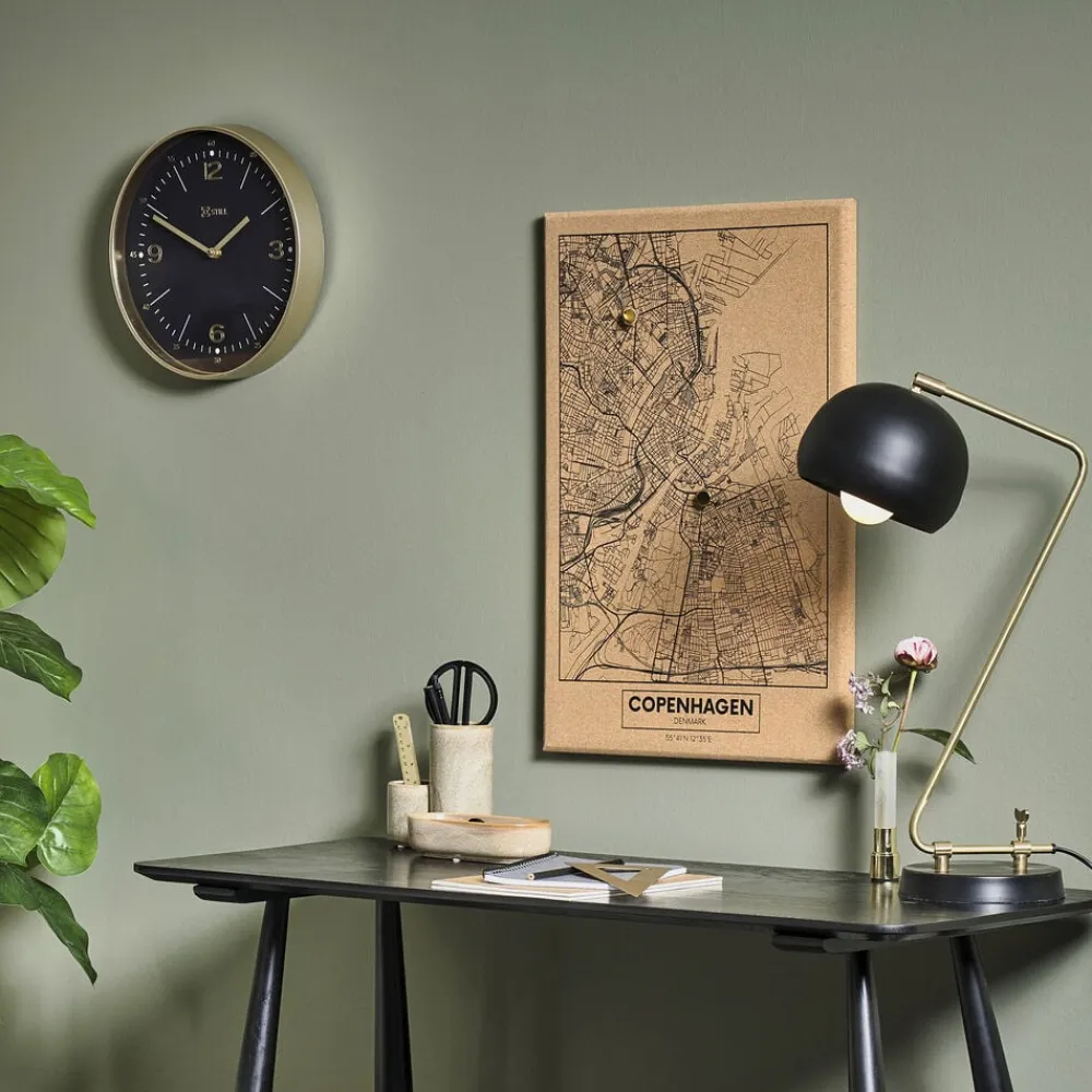 Bykort med Københavns vejnet på korkplade uden ramme.