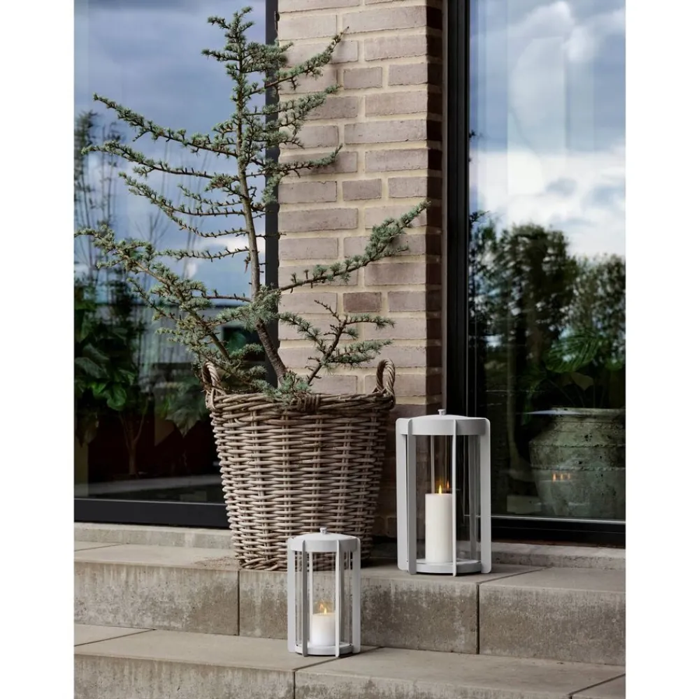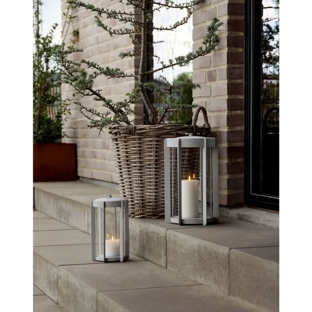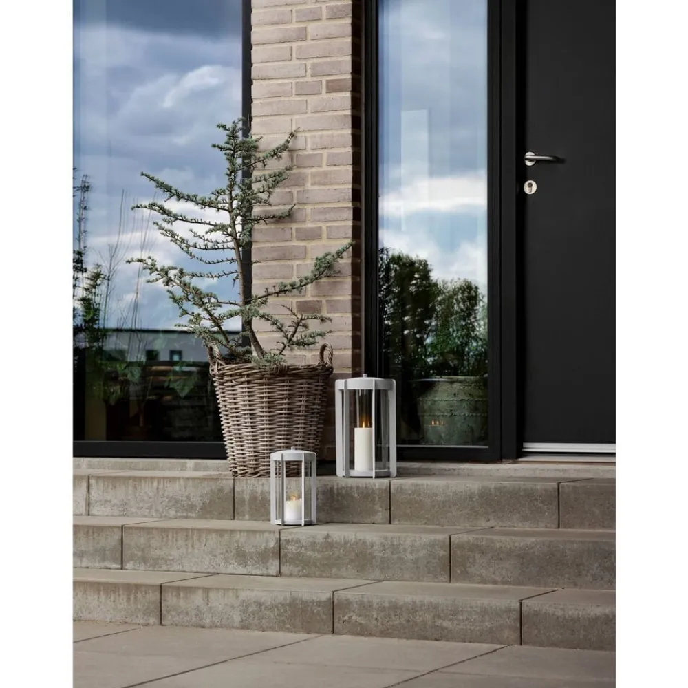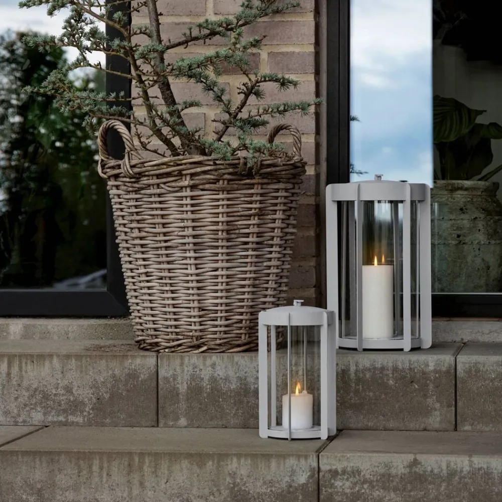 Firefly-lanternerne med glassider findes i to højder, hhv. 25 og 35 cm og er udført i pulverlakeret stål. Topstykket er let at løfte af, når et nyt lys skal sættes i. Du vipper bare den lille silikonestrop op, og lægger den ned igen, når lyset er skiftet. Der er noget tidløst over udtrykket, og designinspirationen er da også hentet flere hundrede år tilbage, hvor datidens vogtere gik med lanterner gennem byerne. Her er en moderne version, der er klar til at kaste hyggelys på terrasser og altaner, når tusmørket melder sig.