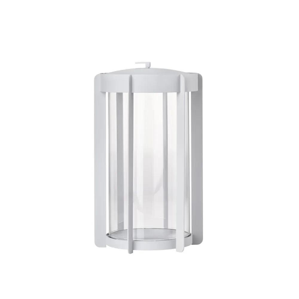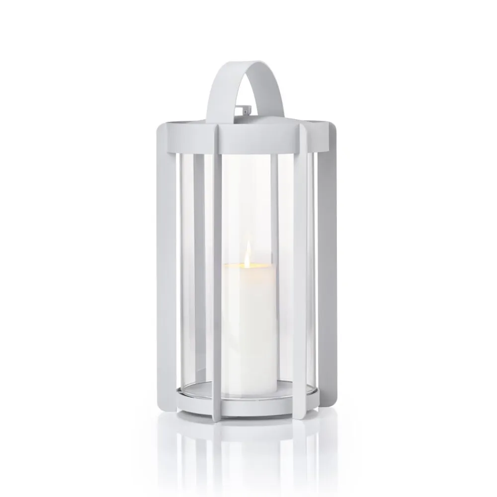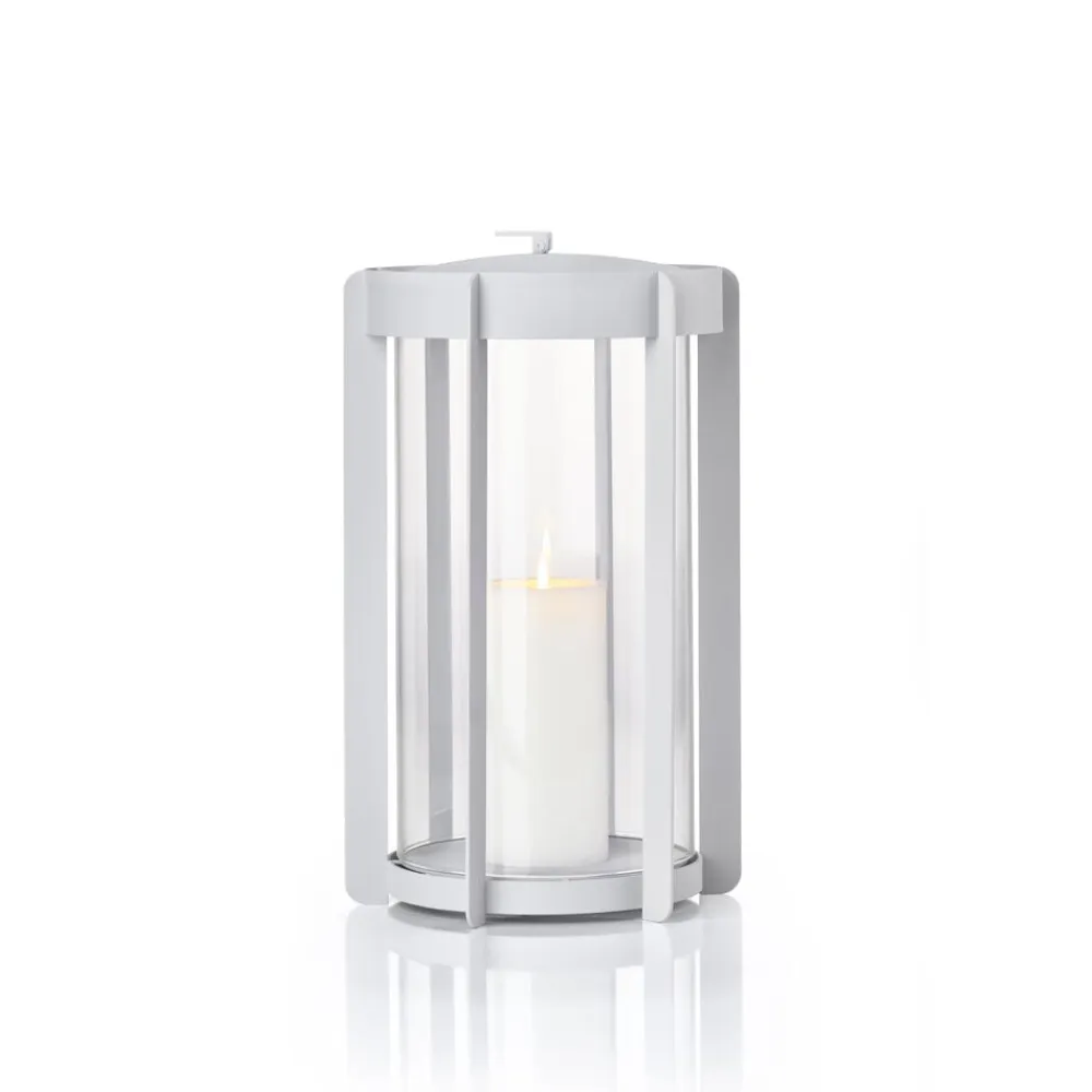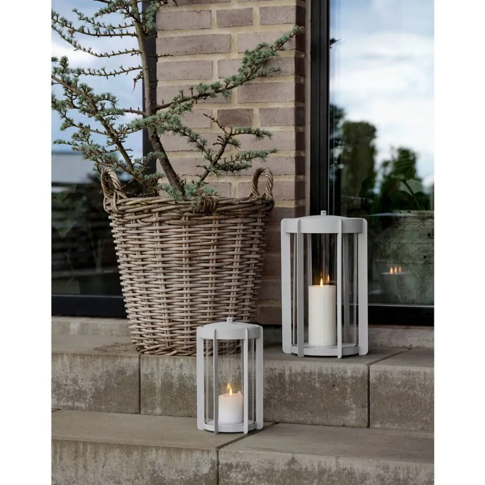 Firefly-lanternerne med glassider findes i to højder, hhv. 25 og 35 cm og er udført i pulverlakeret stål. Topstykket er let at løfte af, når et nyt lys skal sættes i. Du vipper bare den lille silikonestrop op, og lægger den ned igen, når lyset er skiftet. Der er noget tidløst over udtrykket, og designinspirationen er da også hentet flere hundrede år tilbage, hvor datidens vogtere gik med lanterner gennem byerne. Her er en moderne version, der er klar til at kaste hyggelys på terrasser og altaner, når tusmørket melder sig.