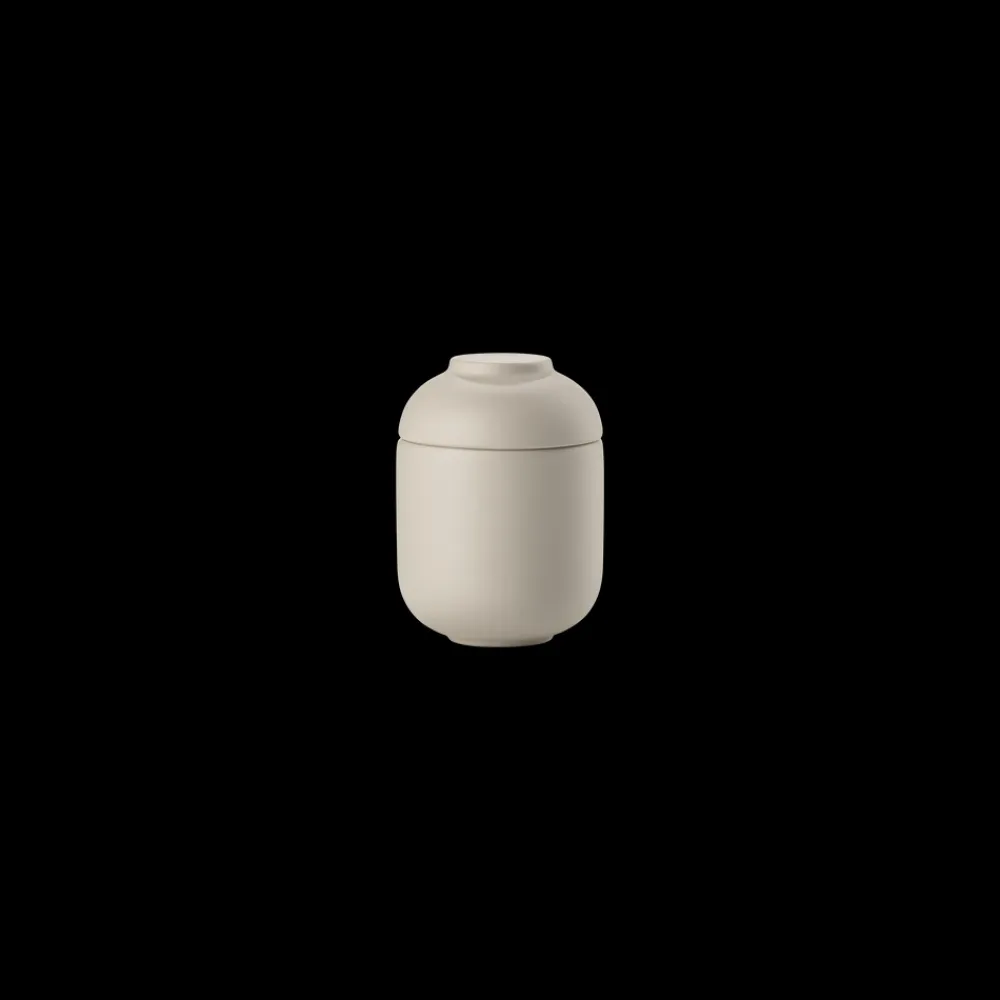 SENSU-krukkerne med låg findes i to forskellige størrelser. Den smalle krukke kan fx bruges til vatpinde eller tandstikkere. Låget til denne passer perfekt som fyrfadsstage, hvis du vender det om. Den brede krukke er mere rummelig og egner sig godt til fx hårpynt, makeup-favoritter eller smykker og ure.