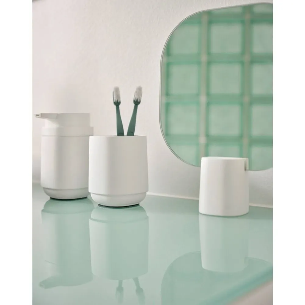Bordspejlet i hærdet glas med betonfod har et organisk og enkelt udtryk. Det stjæler ikke rummet, men glider naturligt ind i indretningen på både badeværelse, soveværelse og entrehylde. Beton er et populært materiale, da det passer godt sammen med naturmaterialer som træ, keramik og sten. Desuden har beton den fordel, at det bliver brændt ved lavere temperatur end keramik, så man sparer en smule på energien under produktionen. Designteamet Mavro//Lefèvre står bag denne stilsikre udvidelse af Time-universet.
