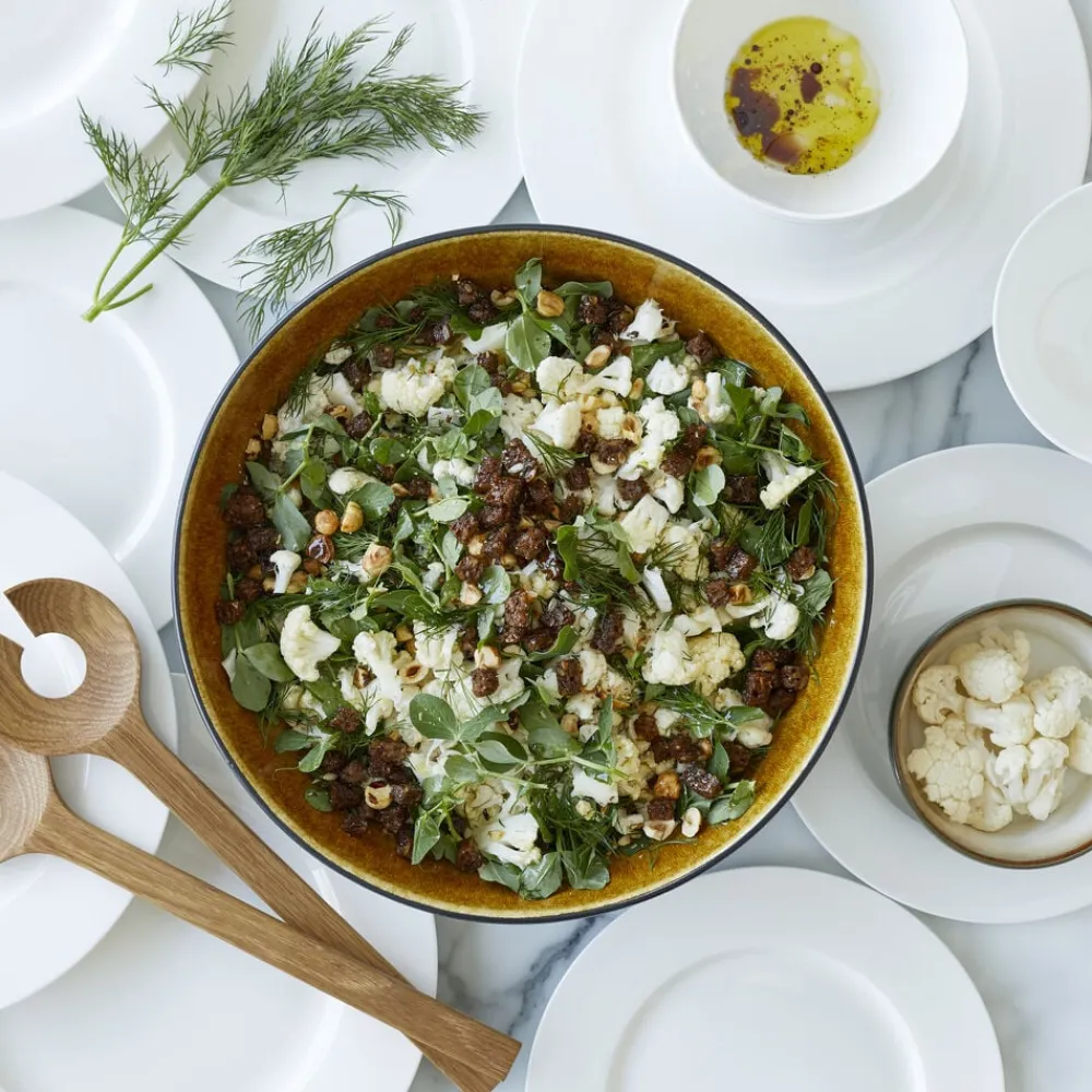 BITZ stor salatskål i sort stentøj med en glansfuld, amber glasur på indersiden kombineret med mat reaktiv glasur på ydersiden. Skålen er perfekt til store salater og anretninger. Velegnet til opvaskemaskine, mikroovn og ovn op til 220 grader. Dia. 30 cm, højde 10 cm.