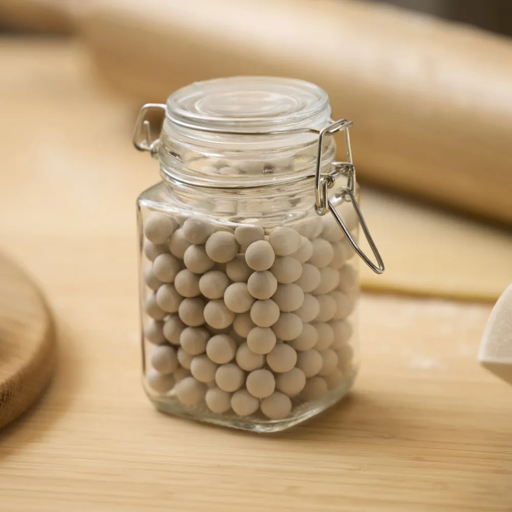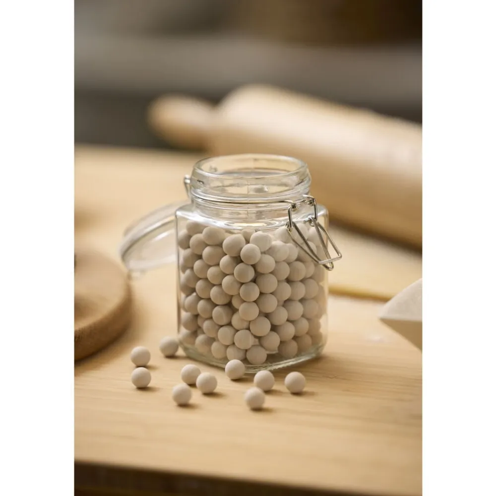 Keramiske bagekugler sørger for, at du altid får en perfekt tærtebund. Læg bagepapir over dejen, så det dækker hele overfladen. Fordel bagekuglerne jævnt, og bag som normalt – så slipper du for, at bunden hæver op. Bagekuglerne er varmebestandige og kan bruges igen og igen.
