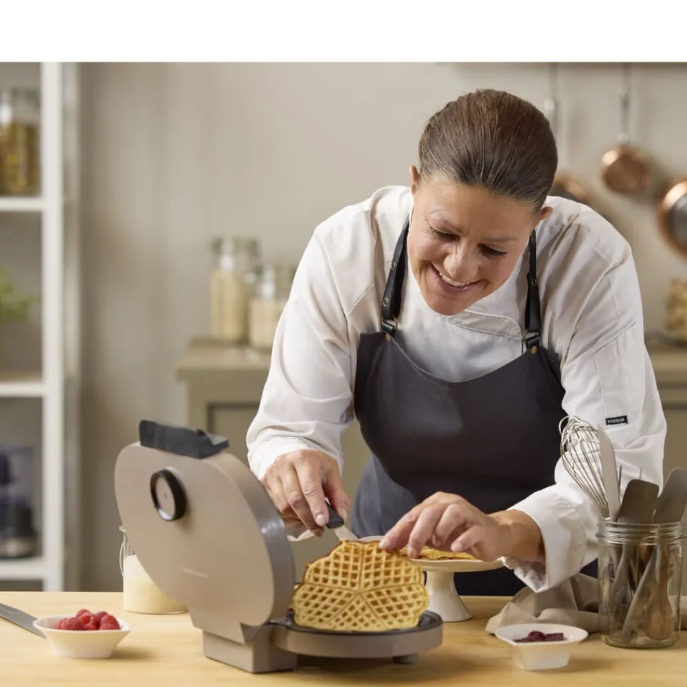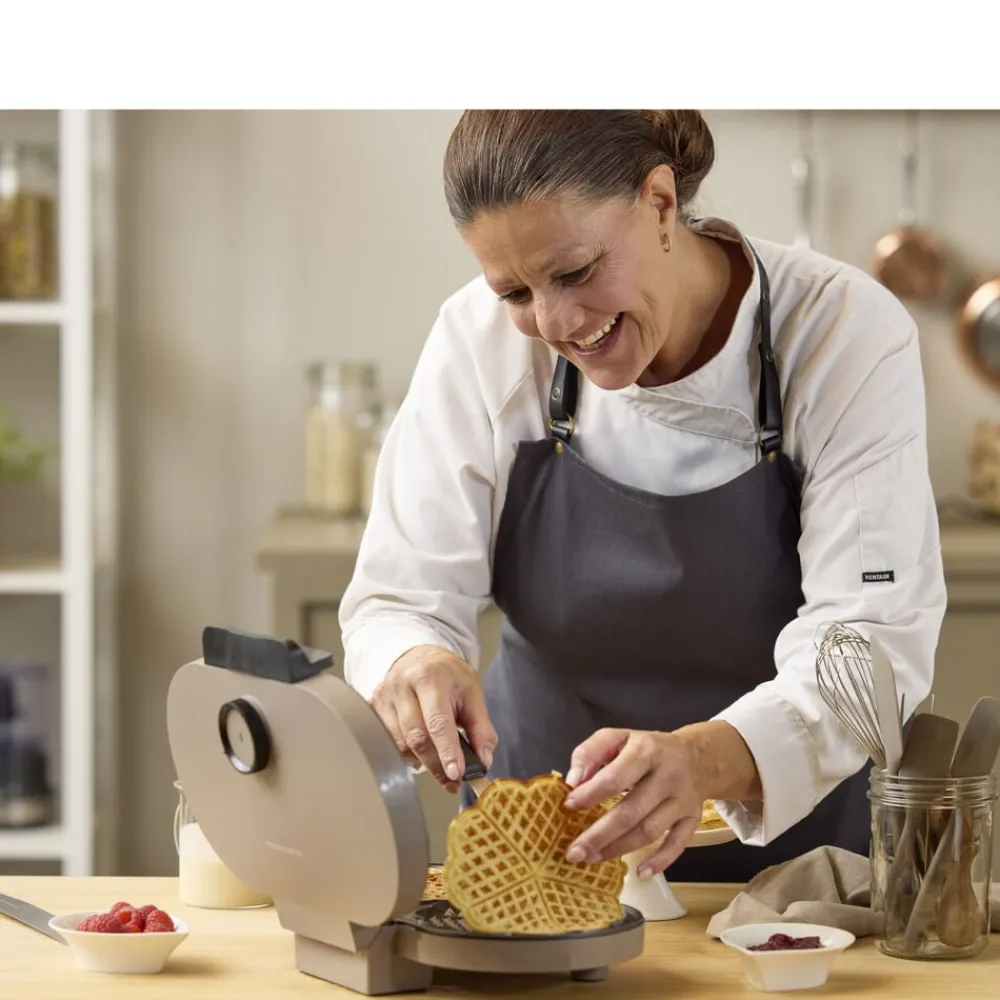Giv morgenbordet eller eftermiddagshyggen et ekstra skud kærlighed med hjerteformede vafler, der vækker begejstring hos både store og små. Dobbelt vaffeljern med to plader, hver med en diameter på 15,5 cm, og en non-stick-belægning, som får dine vafler til at slippe nemt – og den keramiske belægning er fremstillet af råvarer, der ikke indeholder PFAS. Med justerbar temperatur, lysindikator og en smart dampventilering, som sikrer, at hver vaffel får den helt rigtige sprødhed.