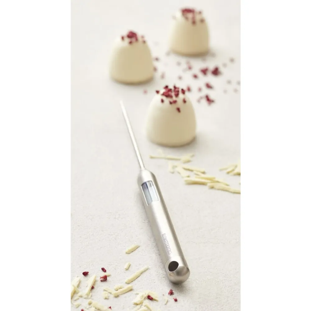 Dette smarte og enkle digitale køkken-/bolchetermometer er en god hjælper til mange forskellige opgaver i køkkenet, som for eksempel når du skal holde styr på sukkerlagen, bolchemassen eller flødekaramellen. Det måler fra -45 til +200 °C og har et klart LCD-display med hvidt baggrundslys. Enkelt at bruge og let at læse. Bruger 1 x AAA-batteri (medfølger ikke).