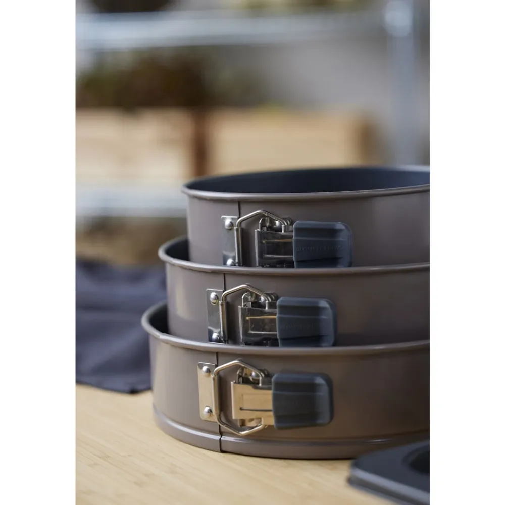 Springform i ekstra kraftigt kvalitetsstål med en bundtykkelse på 1 mm og en praktisk non-stick-belægning, som får de hjemmebagte lækkerier til at slippe formen lettere. Designet er elegant med en smuk latte farve på udvendig side. Springformen er perfekt til fx cheesecake, chokoladekage, gulerodskage samt lagkage- eller dessertbunde. Bør vaskes før brug første gang. Springformen kan tåle temperaturer op til max 230 °C.