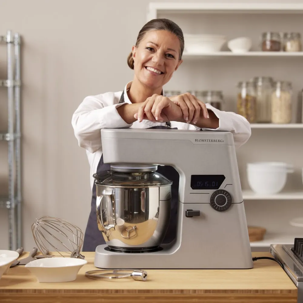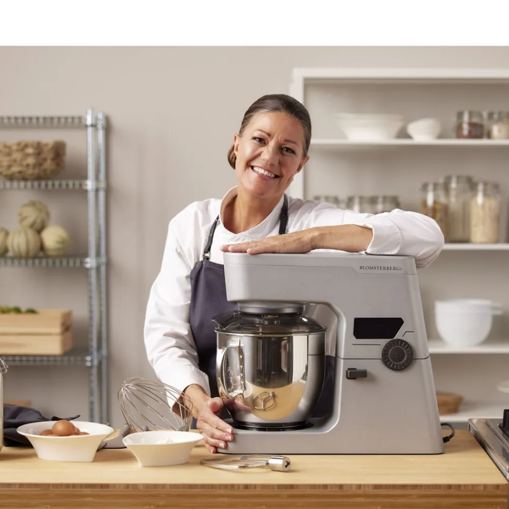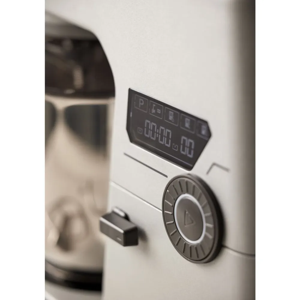 En suveræn røremaskine i et moderne design med en kraftfuld DC-motor på 800 watt. Den meget rummelige 7 liter røreskål i rustfrit stål kan uden besvær klare de ekstra store mængder i køkkenet. Røremaskinen har et smart touch-display, hvor det er let at vælge hastighedstrin fra 1 til 10 eller indstille timeren. Den indbyggede arbejdslampe lyser direkte ned i røreskålen, imens maskinen arbejder.