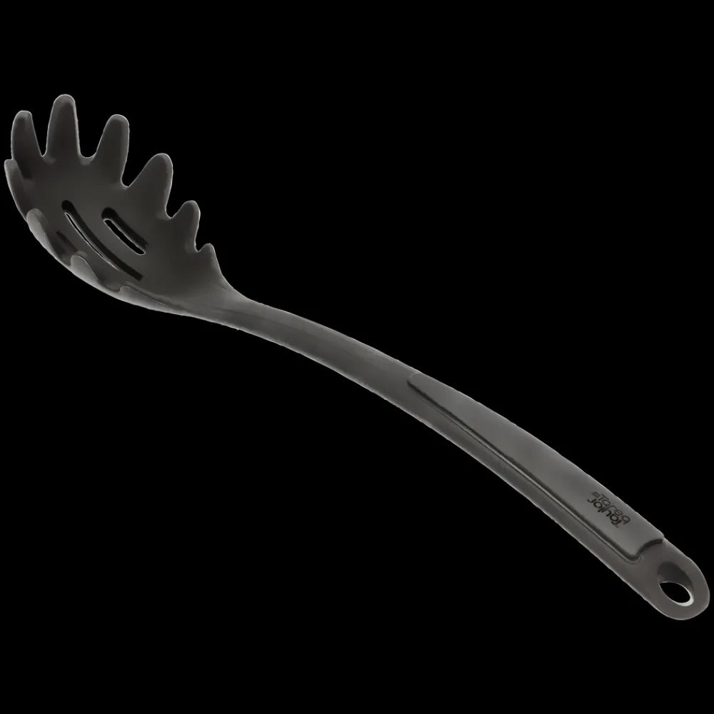 Gode resultater i køkkenet starter med godt køkkenudstyr. Med denne enkle spaghettiske er du sikret høj kvalitet og brugervenligt design. Spaghettiskeen er fremstillet af metal med en silikonebelægning, der giver et godt greb, når du skal have fat i både pastaskruer og spaghetti. Skeen har praktiske huller i midten, så overskydende vand nemt hældes fra. Velegnet til opvaskemaskine. Tåler temperaturer op til 230 grader C.