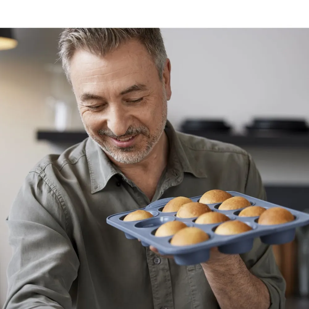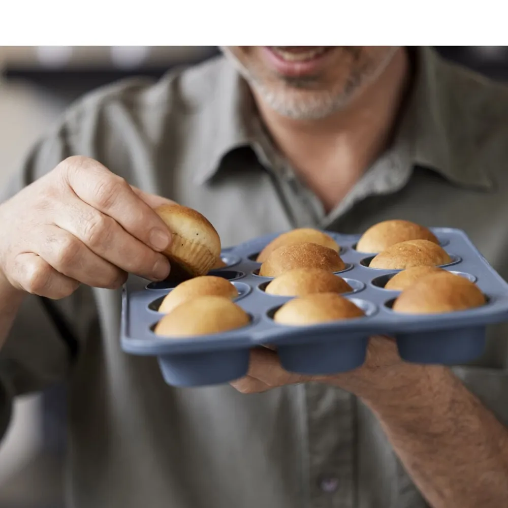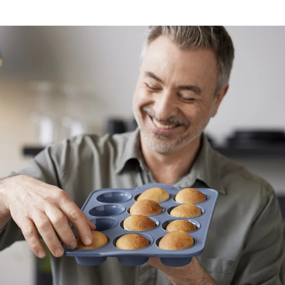 Forkæl venner og familie med lækkert bagværk. Med denne praktiske muffinform får du et uundværligt bageredskab, der holder i årevis. Formen er fremstillet i silikone, der gør det nemt at få dit bagværk ud, når det er færdigt. Den kan fryses, vaskes i opvaskemaskine og tåler temperaturer op til 220 grader C.