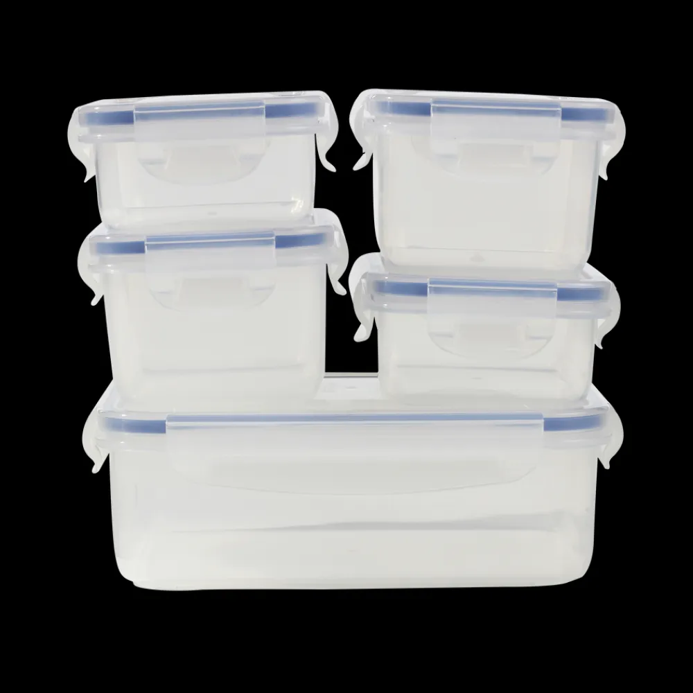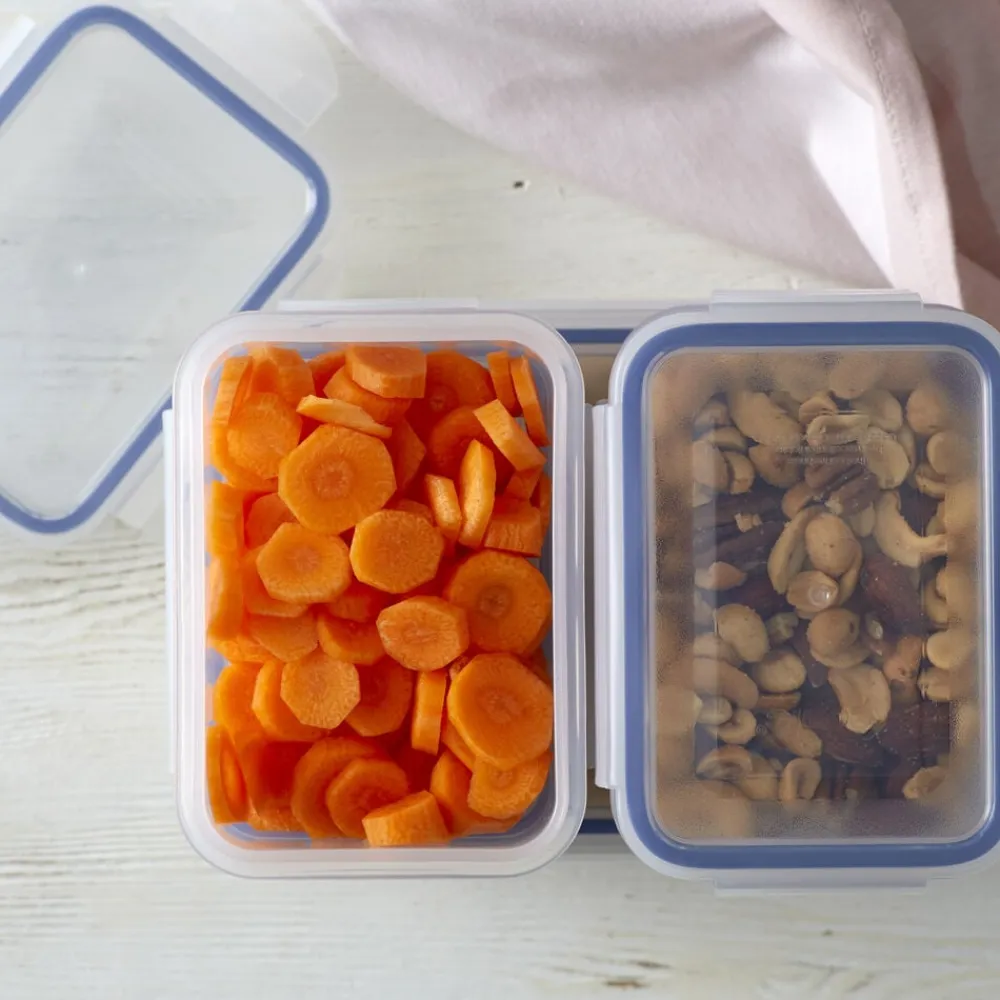 Lufttætte opbevaringsbokse med 4 klips og gummikant.
