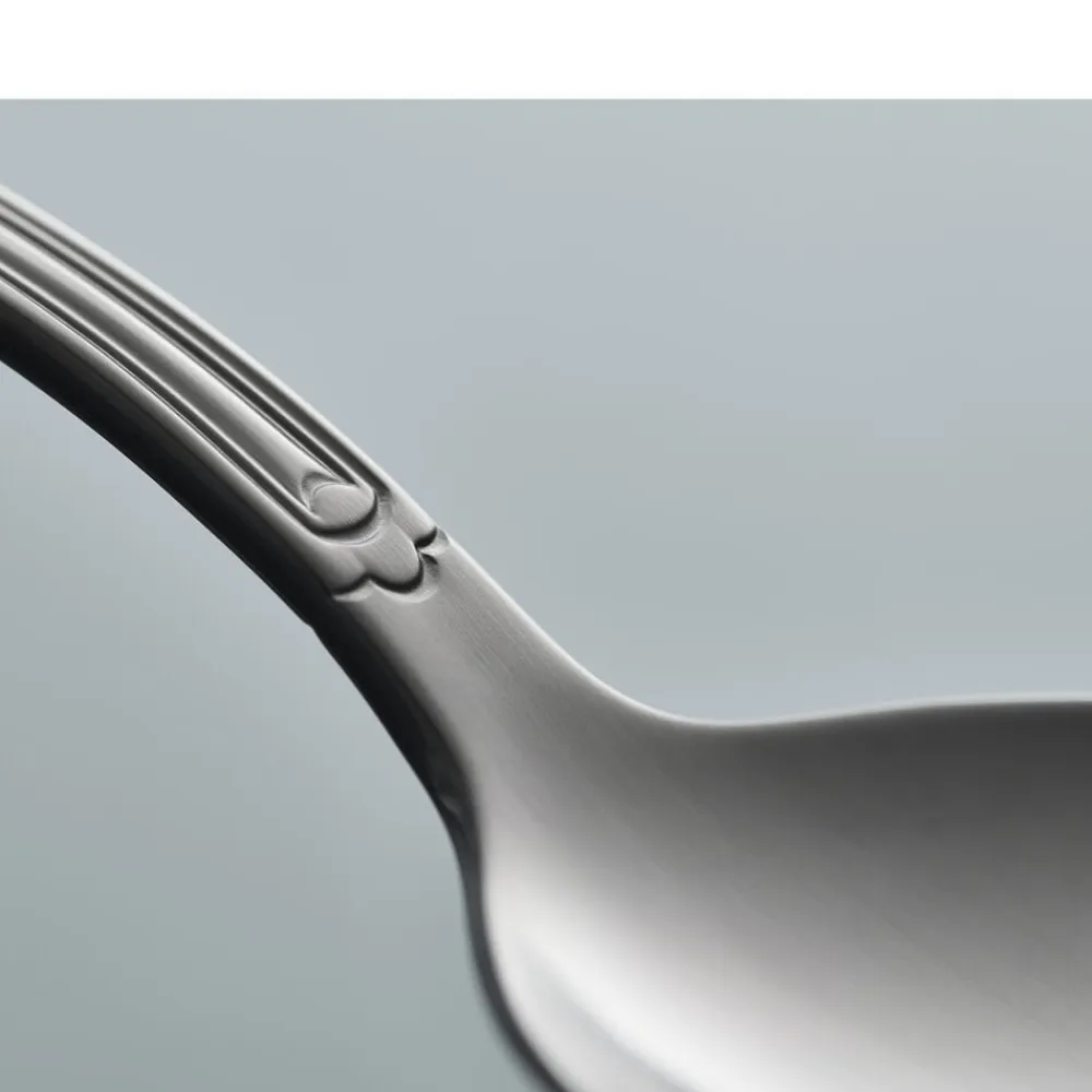 Attaché står for et rent design inspireret af barokken. Bestikket er skabt i traditionel stil med en dobbeltrillet kant og produceret i matpoleret rustfrit stål. Tåler opvaskemaskine.