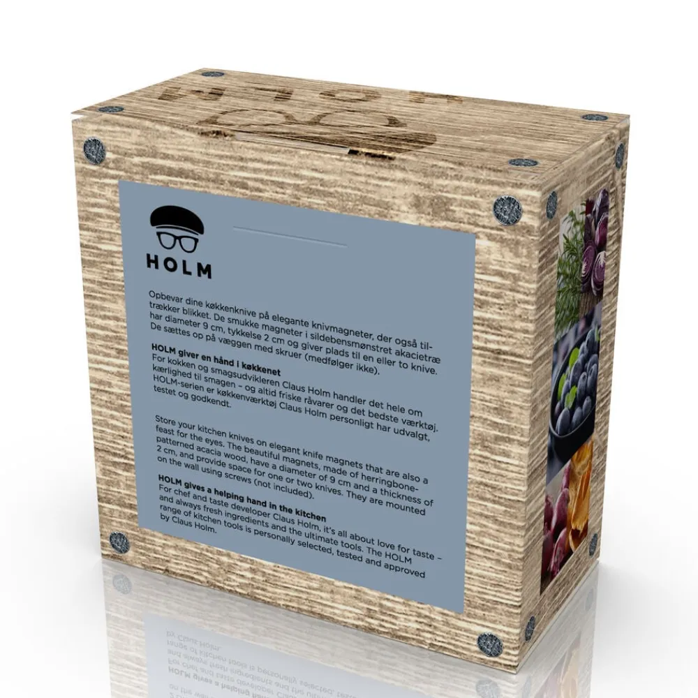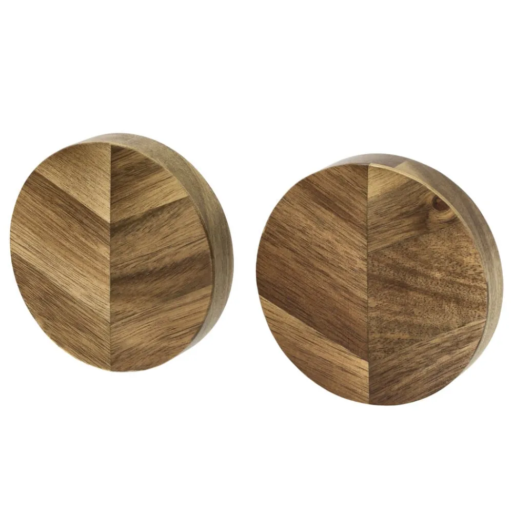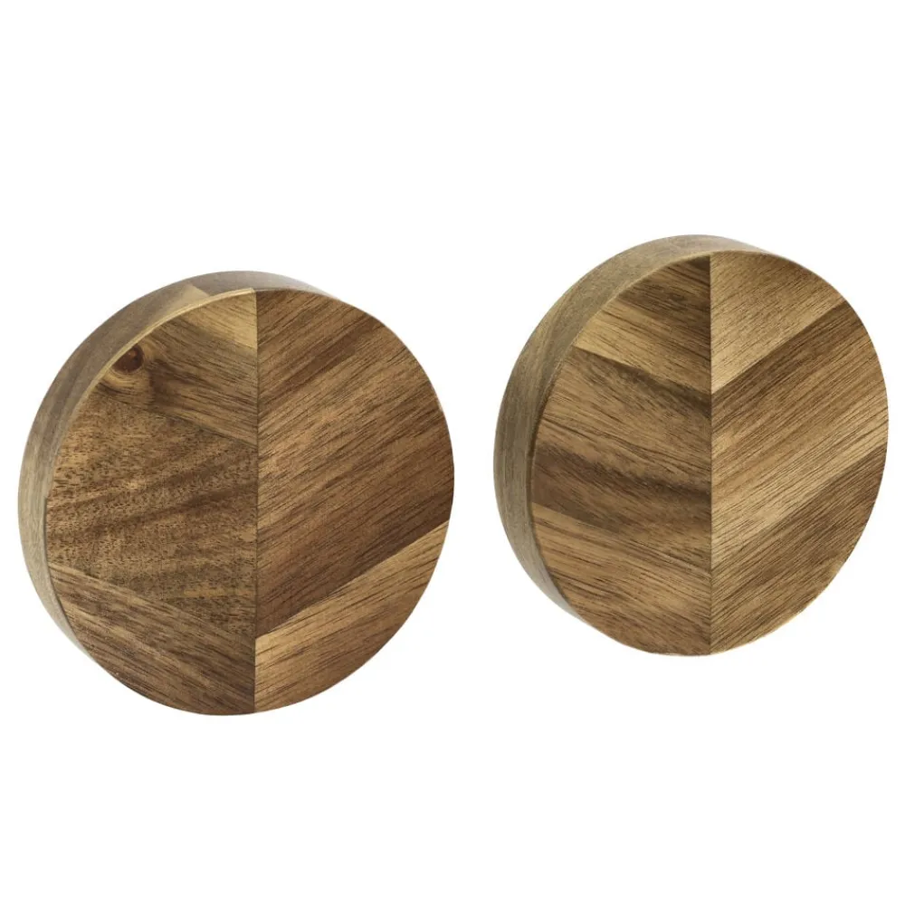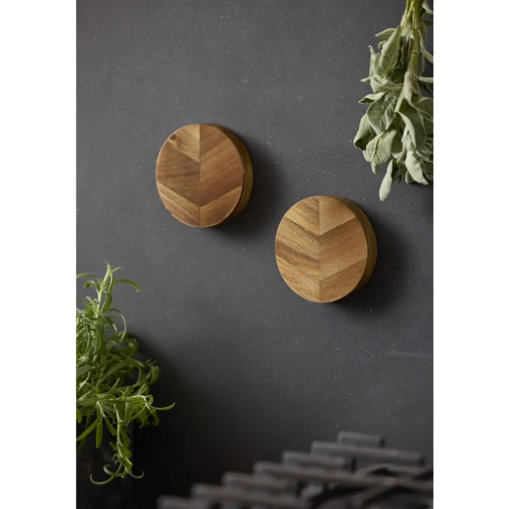 Opbevar dine køkkenknive på elegante knivmagneter, der også tiltrækker blikket. De smukke magneter i sildebensmønstret akacietræ har diameter 9 cm, tykkelse 2 cm og giver plads til en eller to knive. De sættes op på væggen med skruer (medfølger ikke).