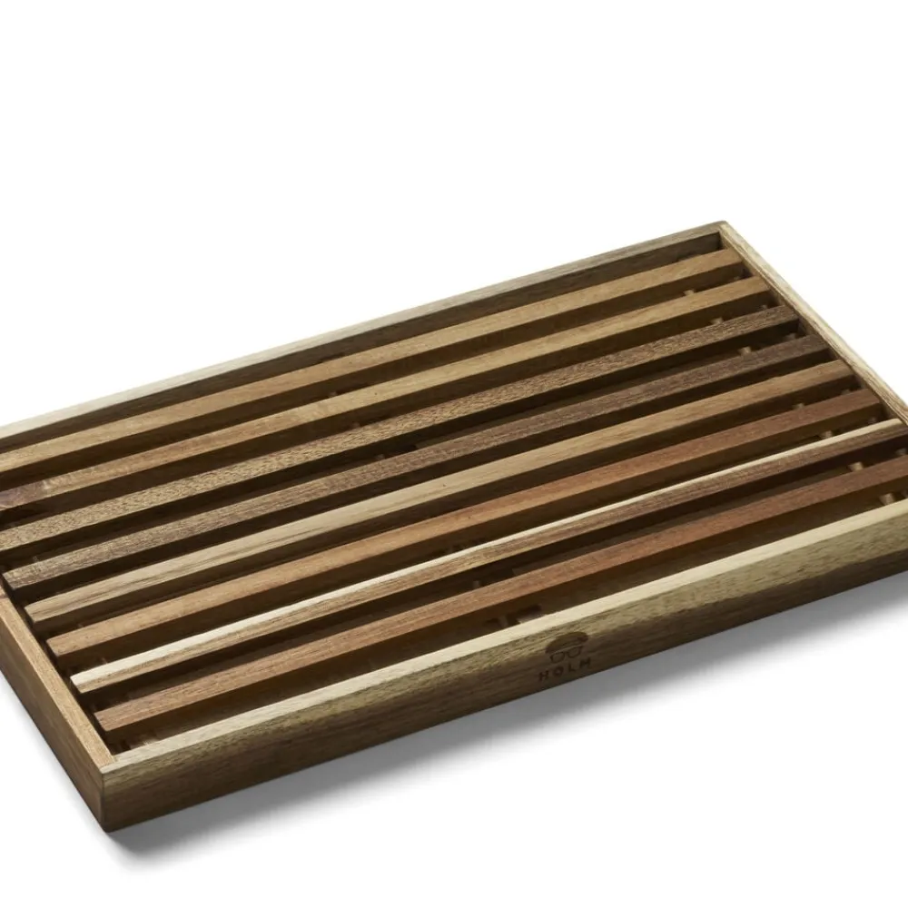 Krummeskærebræt i akacietræ. Egner sig perfekt til udskæring samt anretning af brød. Læg aldrig dit skærebræt i blød. Vaskes med varmt vand og mild sæbe.
