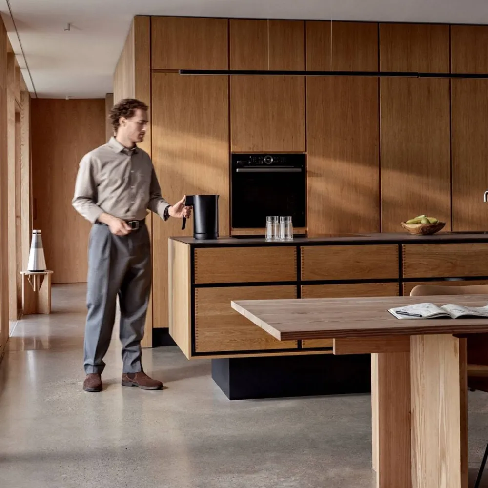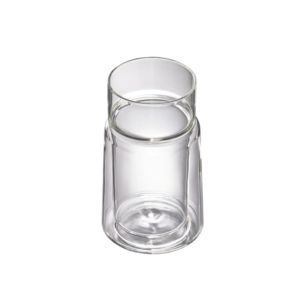 Jacob Jensens elegante kaffeglas er en sublim kombination af et dobbeltvægget kar med en enkeltvægget kant. Den tynde kant er behagelig at drikke af, og termoeffekten i beholderen holder kaffen perfekt varm. Glassene findes i tre størrelser, 33 cl til latte, 21 cl til americano og 7 cl til espresso.