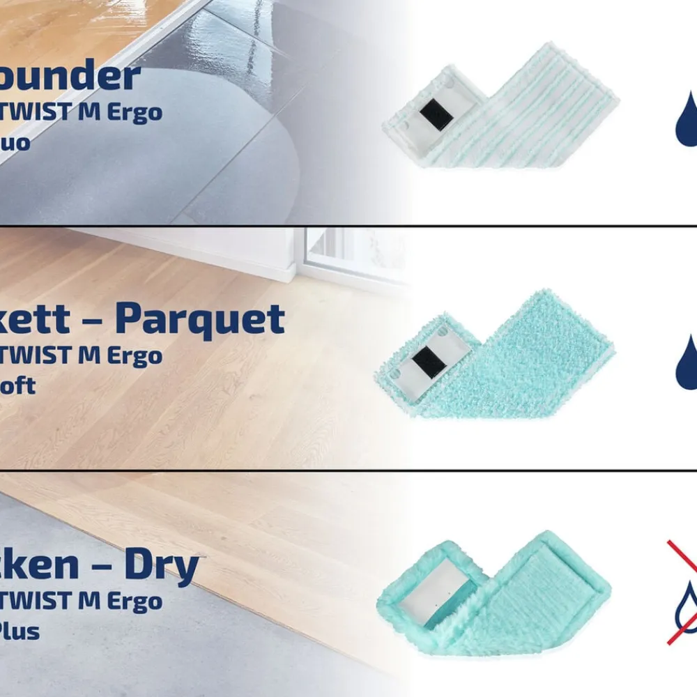 Skånsom rengøring uden ridser, striber eller vandskader. Den superbløde moppeklud er det ideelle valg til sarte gulve som parket, laminat og træ. Den særlige polyesterstruktur gør den ekstra nænsom mod overfladen. Kan vaskes ved 60 °C og bevarer sin rengøringsevne, selv efter gentagen vask.