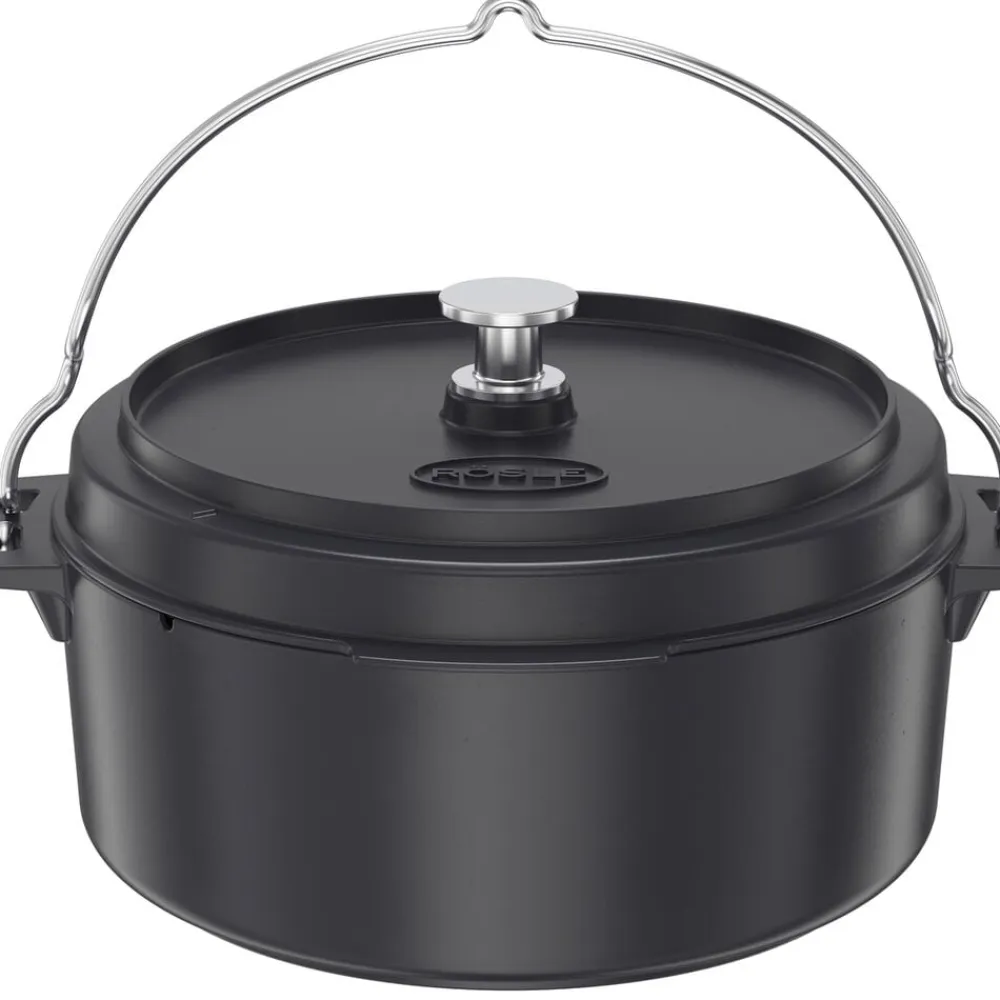 Gryde i støbejern, der passer til Rösles Vario+ grillsystem. Gryden anvendes til al slags madlavning, fx stegning og bagning. Den kan placeres direkte på ilden, på kogepladen eller på grillristen. 8,5 liter, diameter 35 cm.