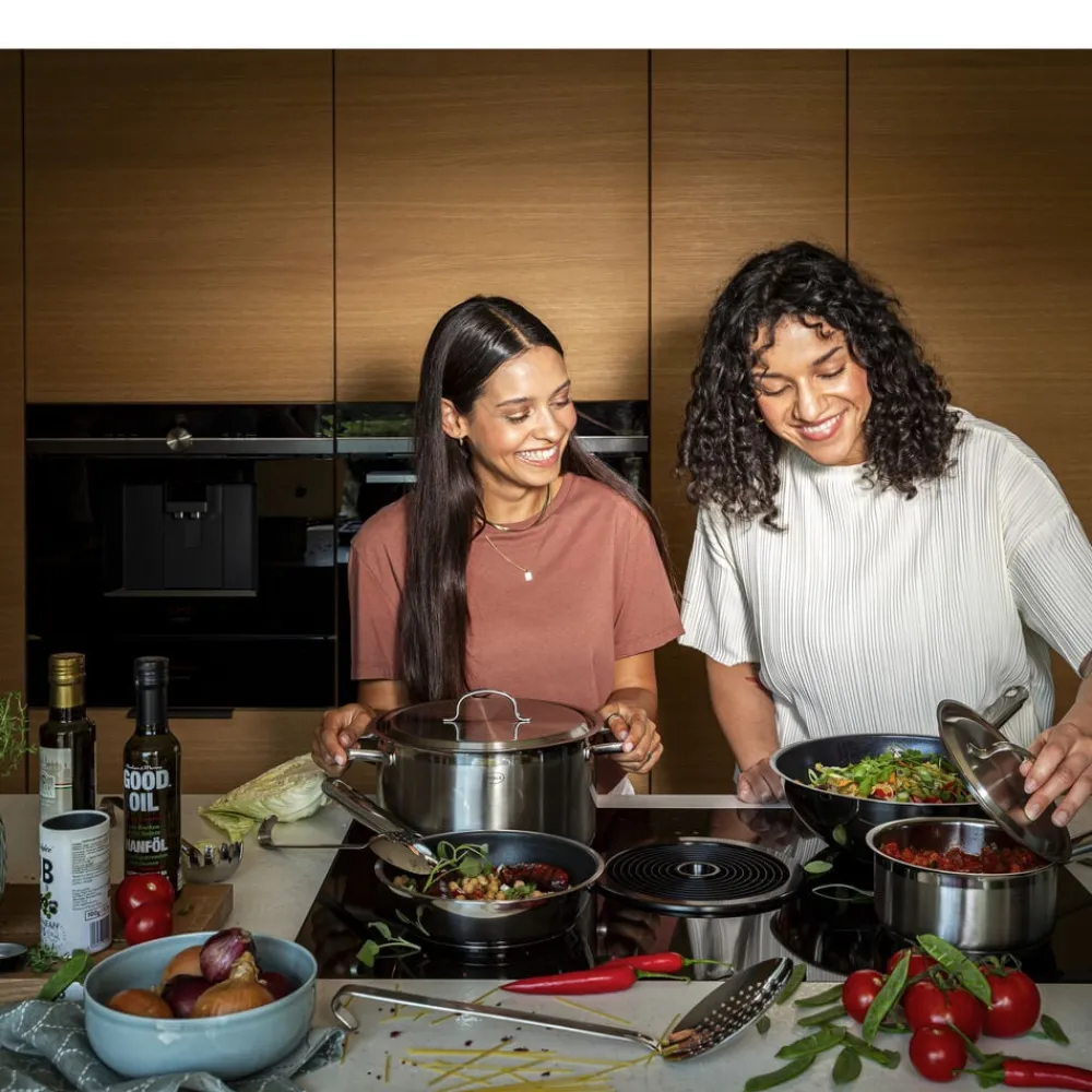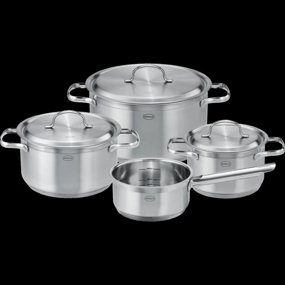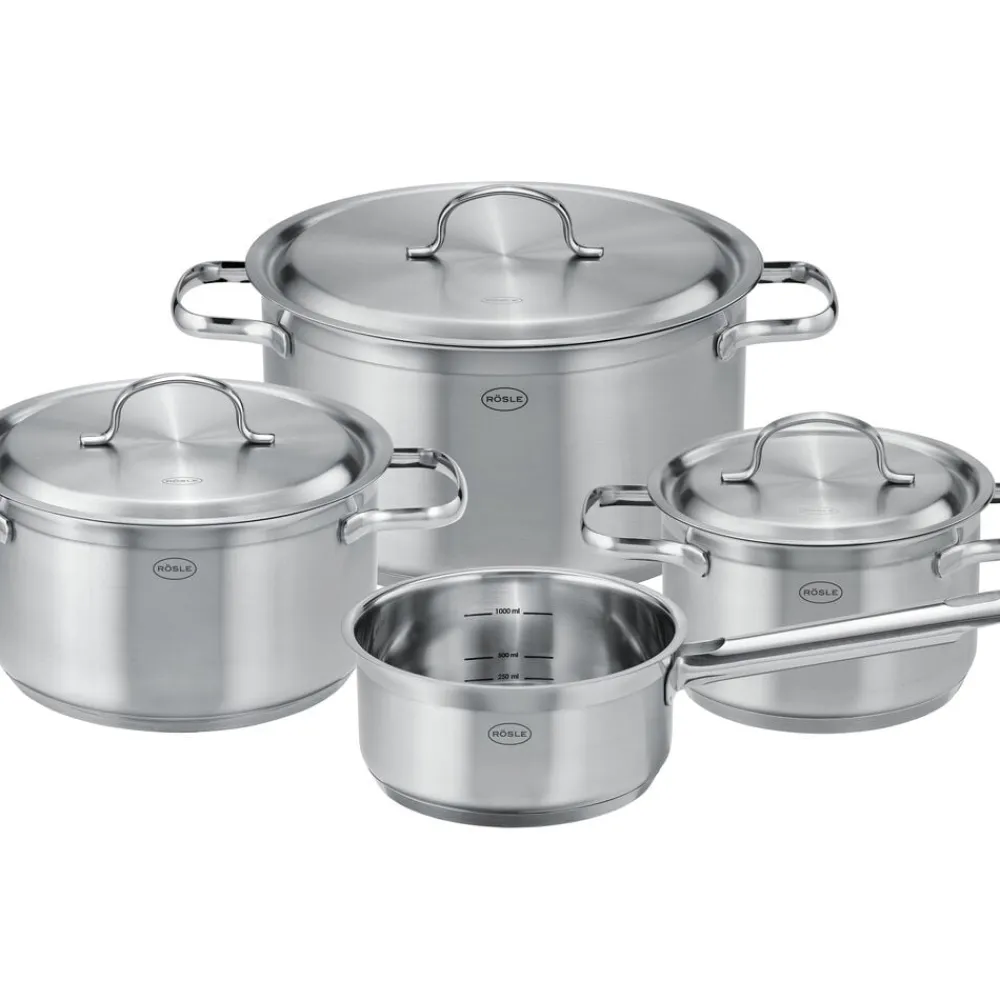 Grydesættet er fremstillet i 18/10 rustfrit stål og har et tidløst og stilfuldt design, som går igen i både gryder og låg. Den tykke bund har en indkapslet aluminiumskerne, der sikrer en hurtig og ensartet varmefordeling, og den praktiske hældekant gør det nemt at hælde uden spild. Lågene har dampudtag. Sættet tåler temperaturer op til 400 °C, kan rengøres i opvaskemaskine og er velegnet til alle varmekilder, inkl. induktion og ovn. Produceret af min. 90 % genanvendt rustfrit stål/aluminium.