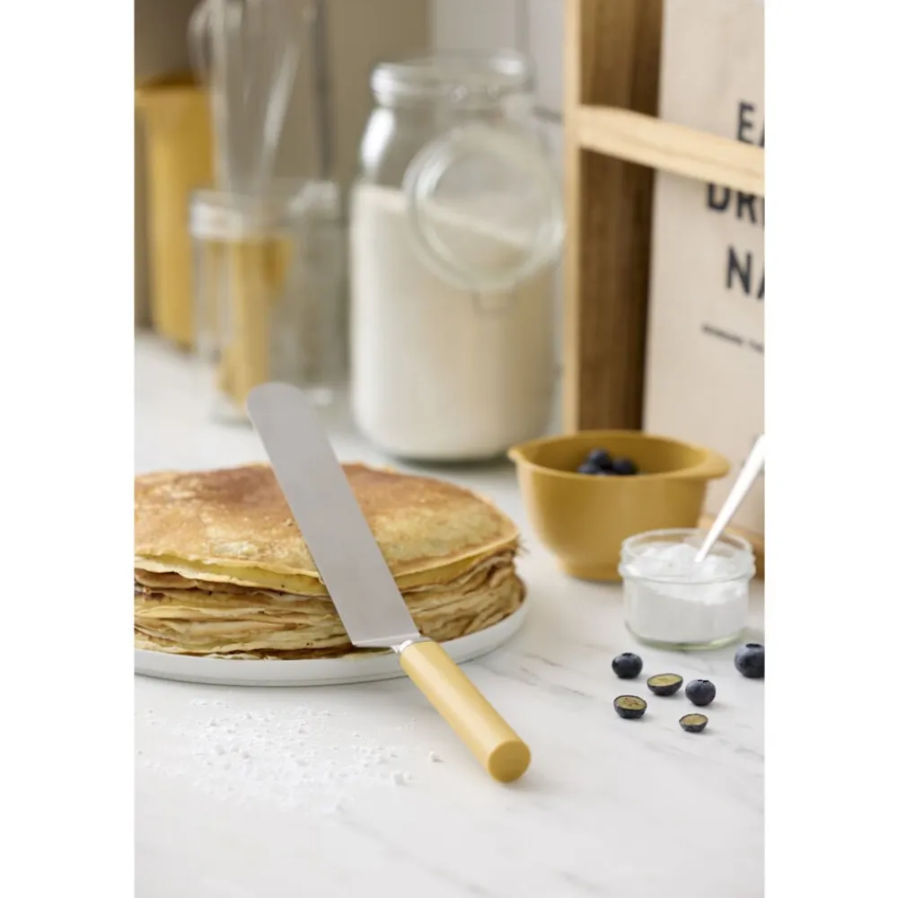 Emma stålpalet har et langt, smalt blad med knæk, som gør den perfekt til at vende pandekager, smøre glasur og meget mere. Den er et køkkenredskab, du vil gribe igen og igen og nyde foreningen af stil og funktionalitet. Nem at rengøre i opvaskemaskinen.