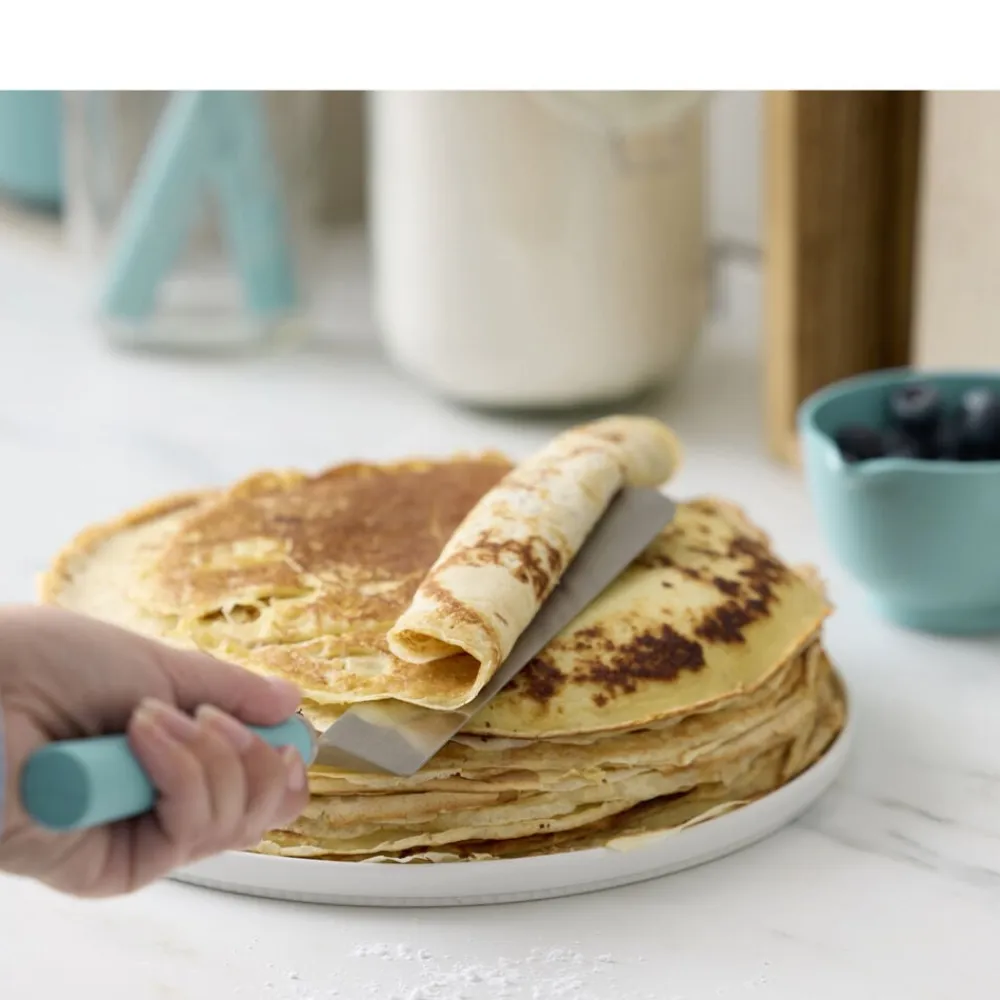 Emma stålpalet har et langt, smalt blad med knæk, som gør den perfekt til at vende pandekager, smøre glasur og meget mere. Den er et køkkenredskab, du vil gribe igen og igen og nyde foreningen af stil og funktionalitet. Nem at rengøre i opvaskemaskinen.