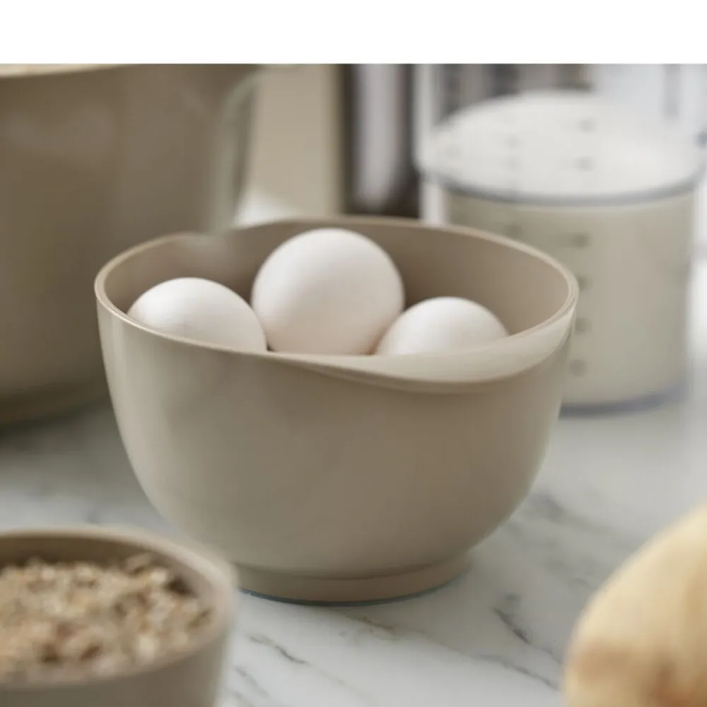 Margrethe-skålen er den klassiske røreskål med det gode greb, den praktiske hældetud og den skridsikre bundring. Den nye version af Margrethe-skålen er fremstillet af plastmaterialet Durostima®. Skålen er nu endnu stærkere og mere brudsikker, og med det nye materiale kan den også tåle mikroovn og fryser. Margrethe-skålen er velegnet til såvel tilberedning som servering, og tilkøbes der låg, er røreskålen omdannet til en praktisk opbevaringsskål. 5 års garanti.