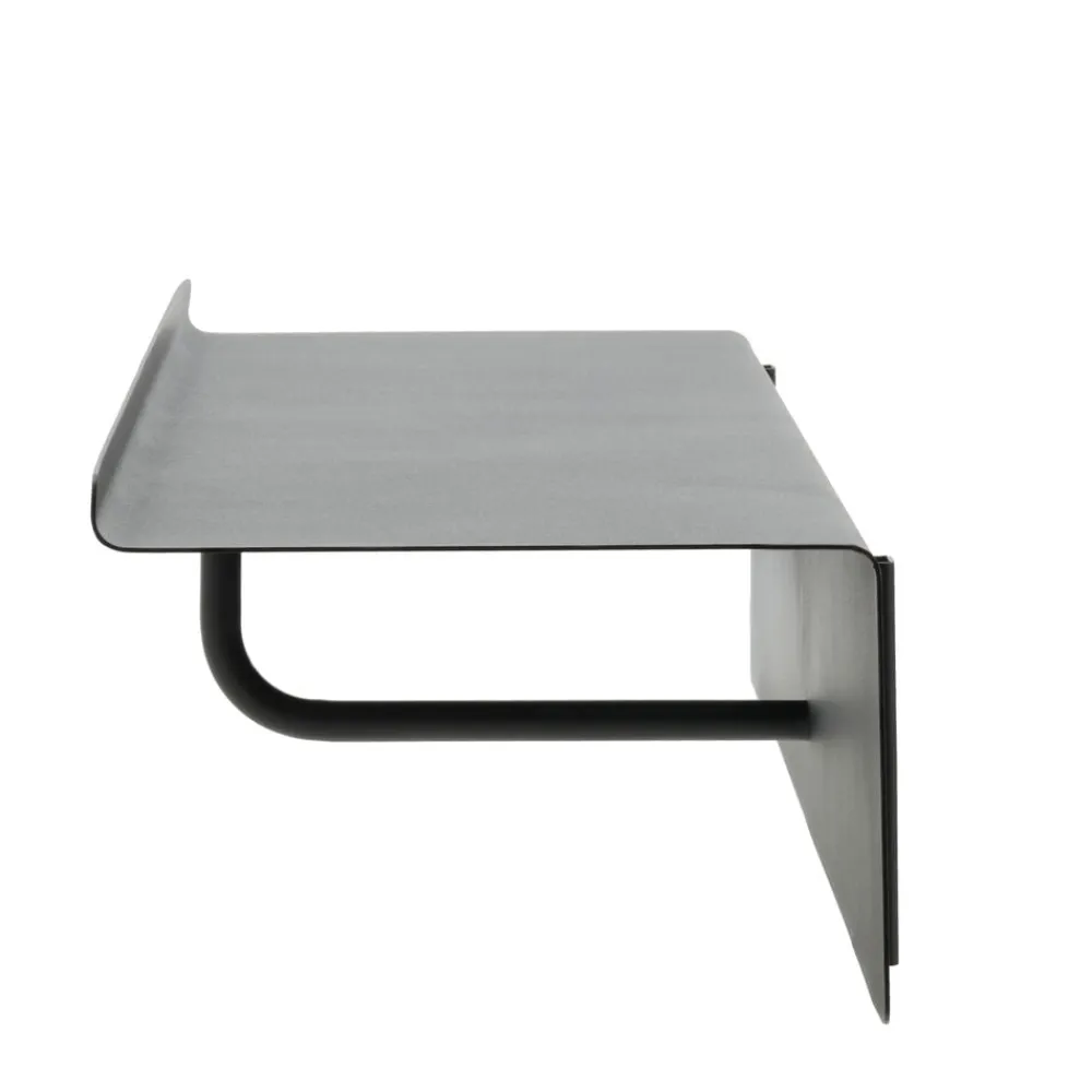 Minimalisme og funktion i smuk forening. Hattehylden fylder behageligt lidt i rummet. Den består af en tophylde med plads til huer, vanter, paraplyer m.v. Under hylden er en bøjlestang vinkelret monteret, så det ikke er skulderen på jakken, men fronten, der vender udad. Det giver et klædeligt udtryk i entréen. Afhængig af tykkelsen på overtøjet er der plads til 4-5 stykker. Takket være de medfølgende skjulte vægbeslag slipper du for synlige skruer. Udført i pulverlakeret stål.