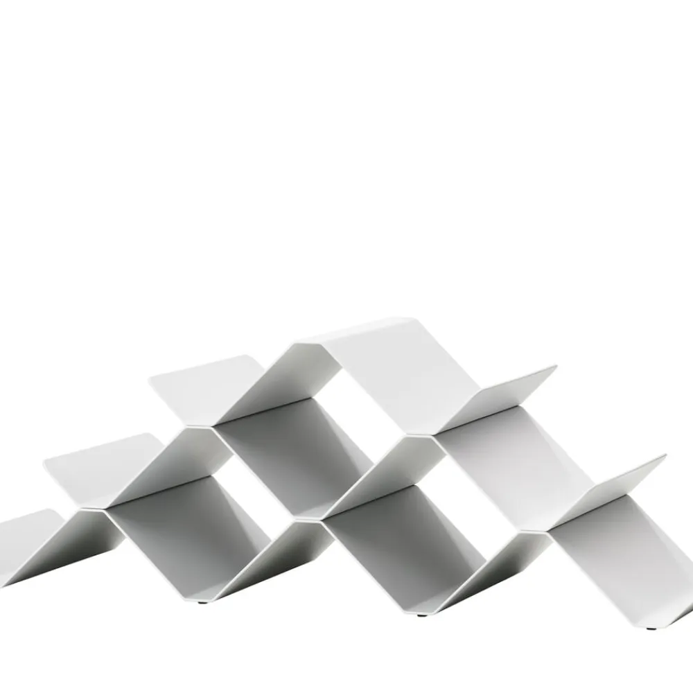 Stilrent og stabilt design. De fleste elsker synet af en fyldt vinreol. Derfor er det praktisk, at vinreolen Rocks kan rumme op til 9 flasker, men nedskaleres i størrelse i takt med, at flaskerne tømmes. Pyramiden bygges op fra bunden, og du kan nemt klikke en etage mere på, hvis du får brug for det.