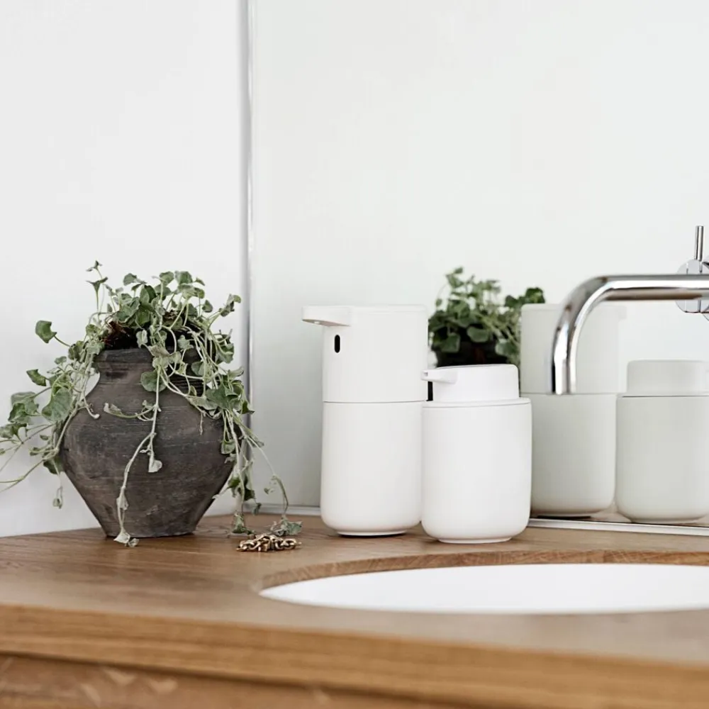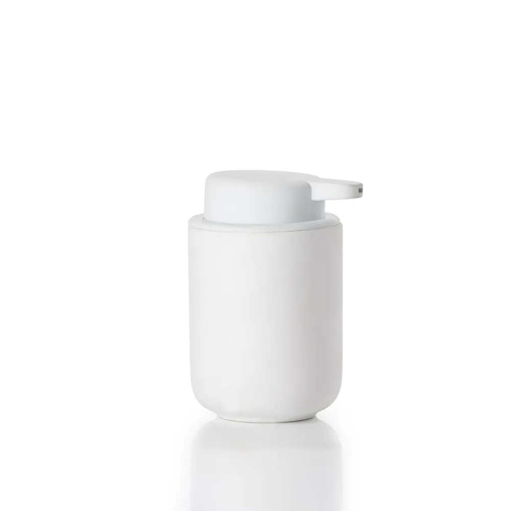 Sæbedispenseren fra badserien Ume er udformet med en praktisk tud. Den er et blødt, blidt og behageligt bekendtskab, og det er designertrioen VE2, som står bag udformningen af de velproportionerede elementer i serien. Højde 12,8 cm. 0,25 l.