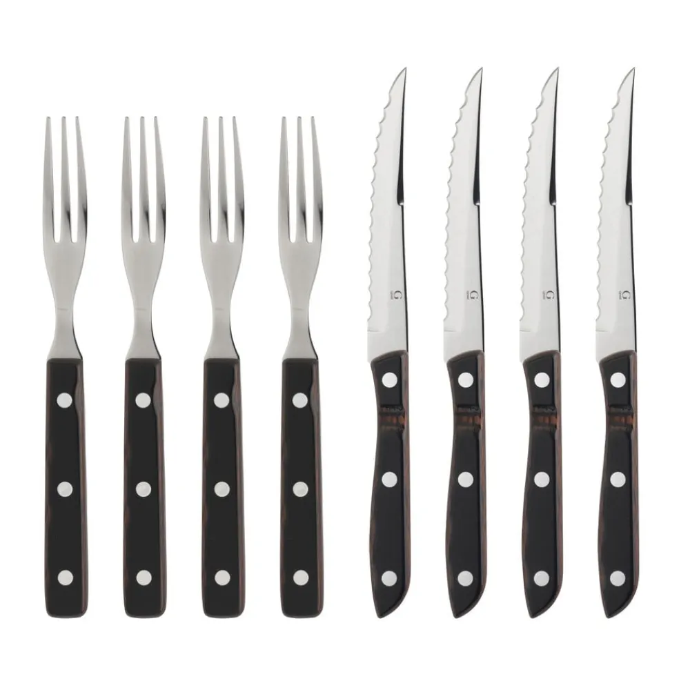 Opvask i hånden anbefales for at bevare de smukke træhåndtag.