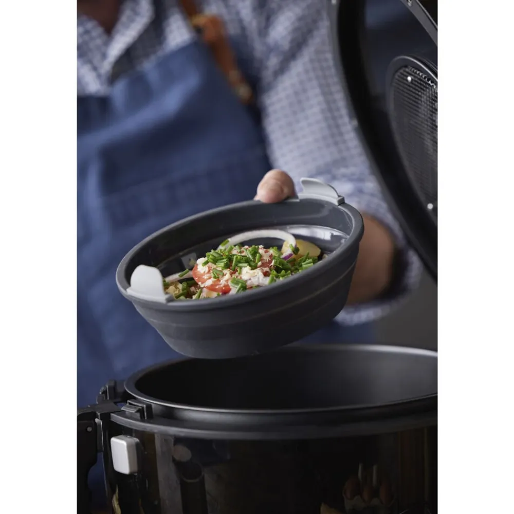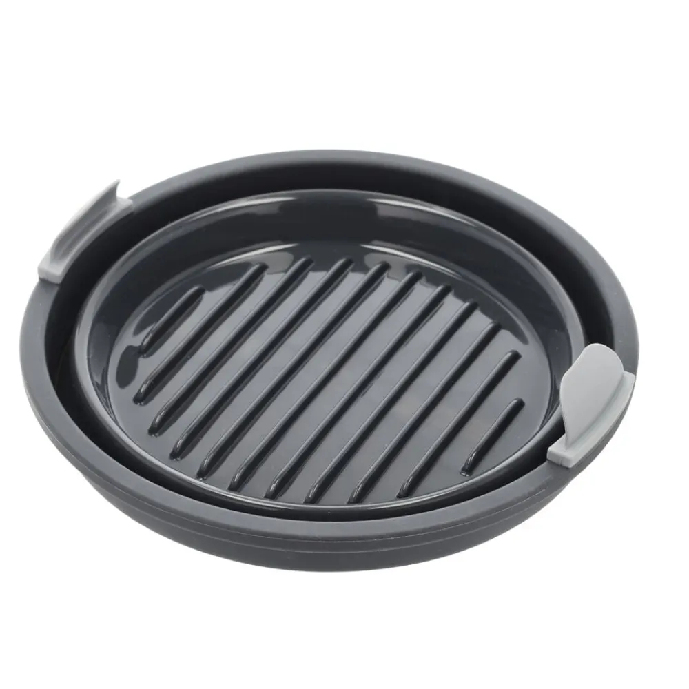 Den runde silikoneform passer perfekt i din airfryer. Du undgår klistrede og fastbrændte madrester i airfryeren, og silikoneformen er nem at vaske i hånden eller i opvaskemaskinen. Formen er 6 cm høj og kan foldes sammen, så den fylder minimalt ved opbevaring. Tåler ovn op til 220 grader.
