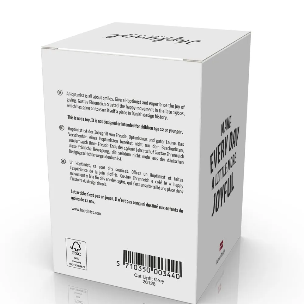 Normalt går katte sine egne veje, men vores Hoptimist-kat ved du, hvor du har. Den hopper kun lidt på stedet, hvis du klapper den på hovedet. En herlig gaveidé til alle, der elsker katte. Ja, selv husets rigtige kat vil sikkert ikke kunne dy sig for at puffe til den nye legekammerat.