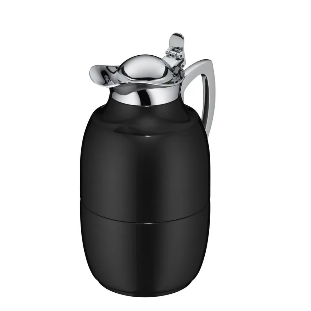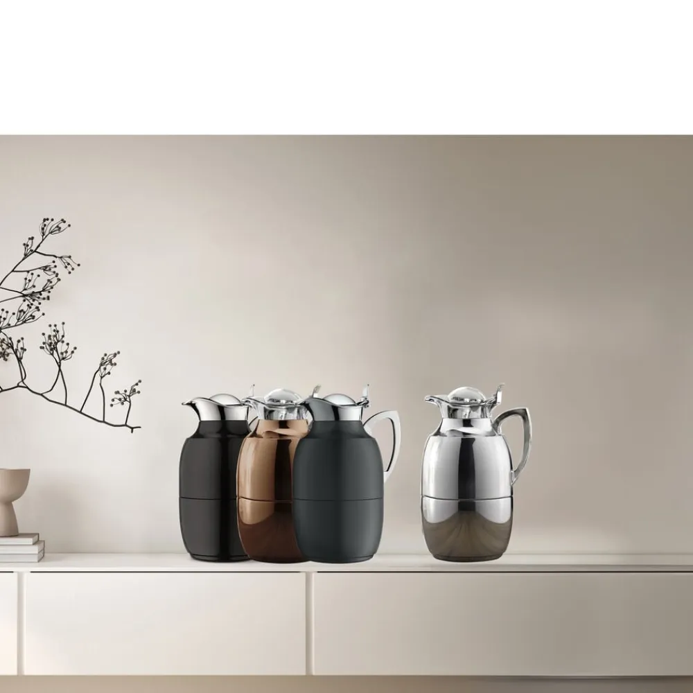 Alfi Juwel er en af verdens mest kendte termokander, og det oprindelige stilrene design kan dateres helt tilbage til 1918. Termokande i poleret stål i høj kvalitet. Dobbeltvægget AlfiDur-indsats i isolerende og hærdet vakuum-glas. Holder varmt i 12 timer, holder koldt i 24 timer. Unikt og praktisk hældesystem. Kan betjenes med én hånd. Ergonomisk, forkromet metalhåndtag.