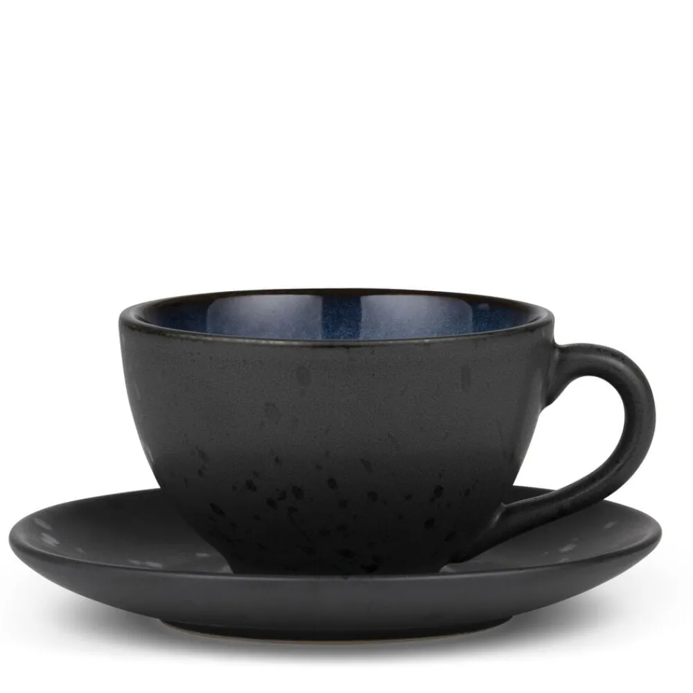 Nyd din cappuccino og dine andre kaffefavoritter i den flotte BITZ Kop med underkop. Fremstillet i mat, sort stentøj med blank, mørkeblå glasur på koppens inderside. 24 cl, 6 cm høj. Velegnet til maskinopvask, mikroovn og ovn op til 220 gr.