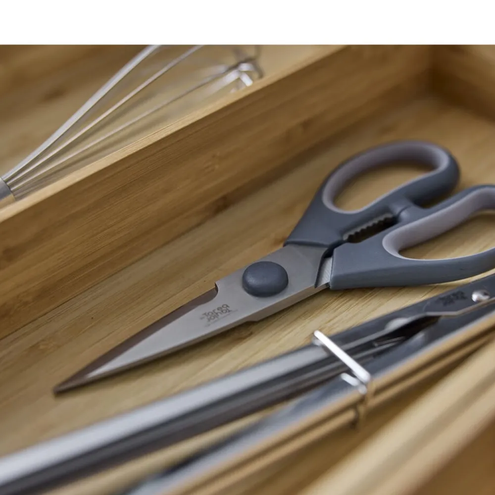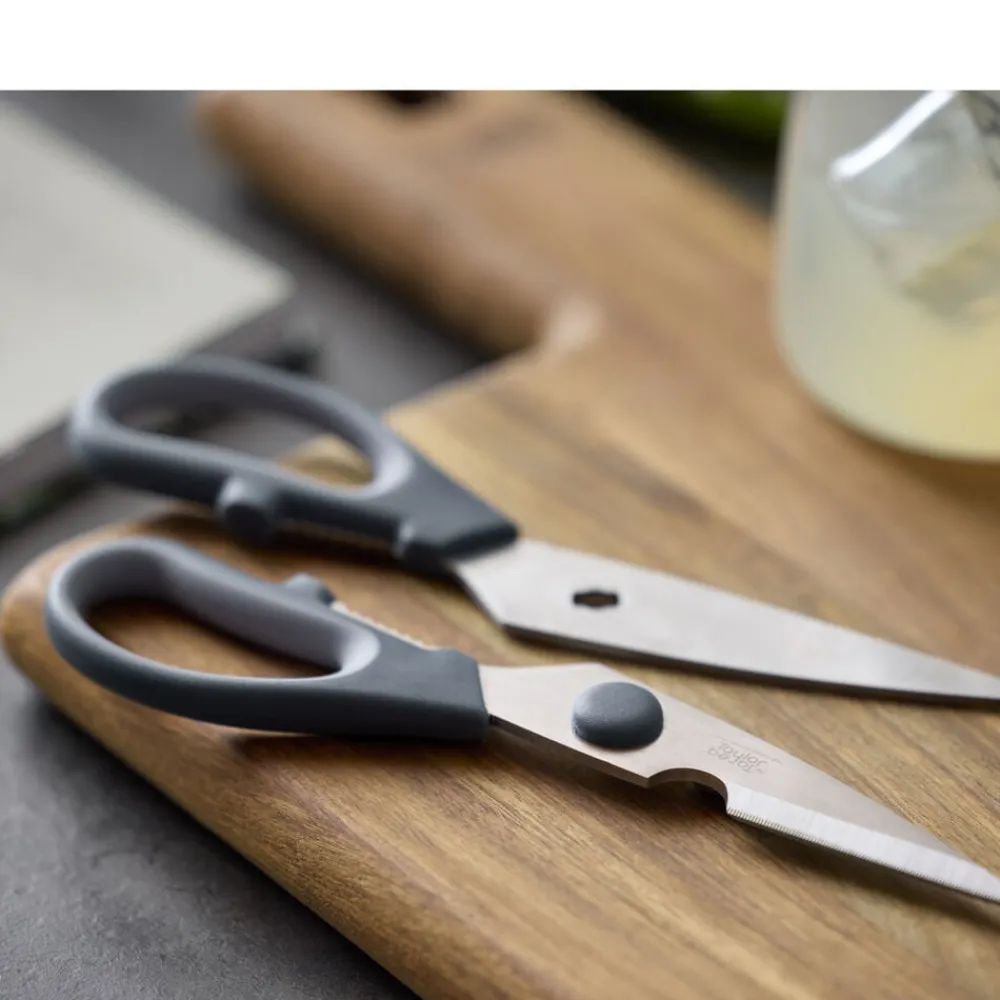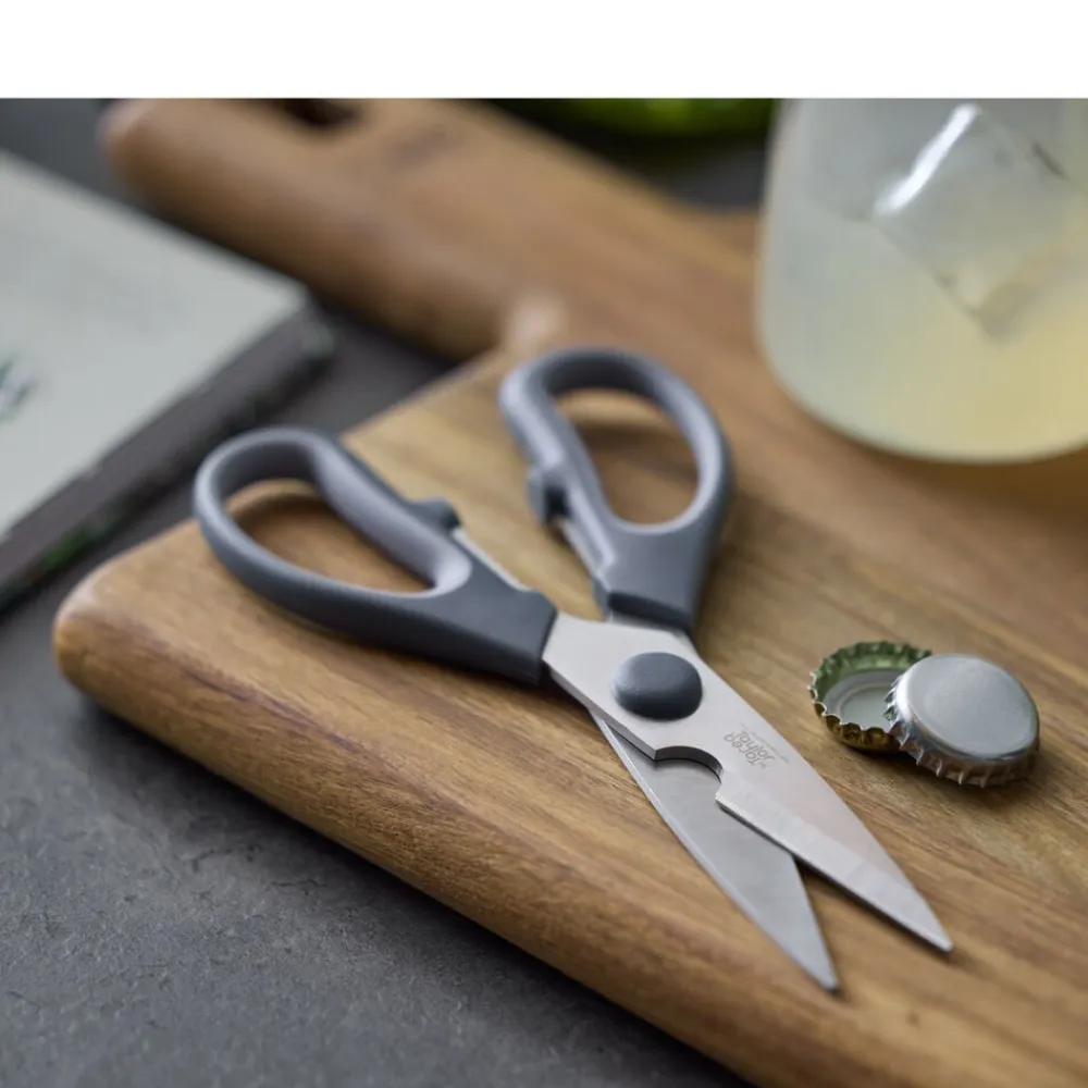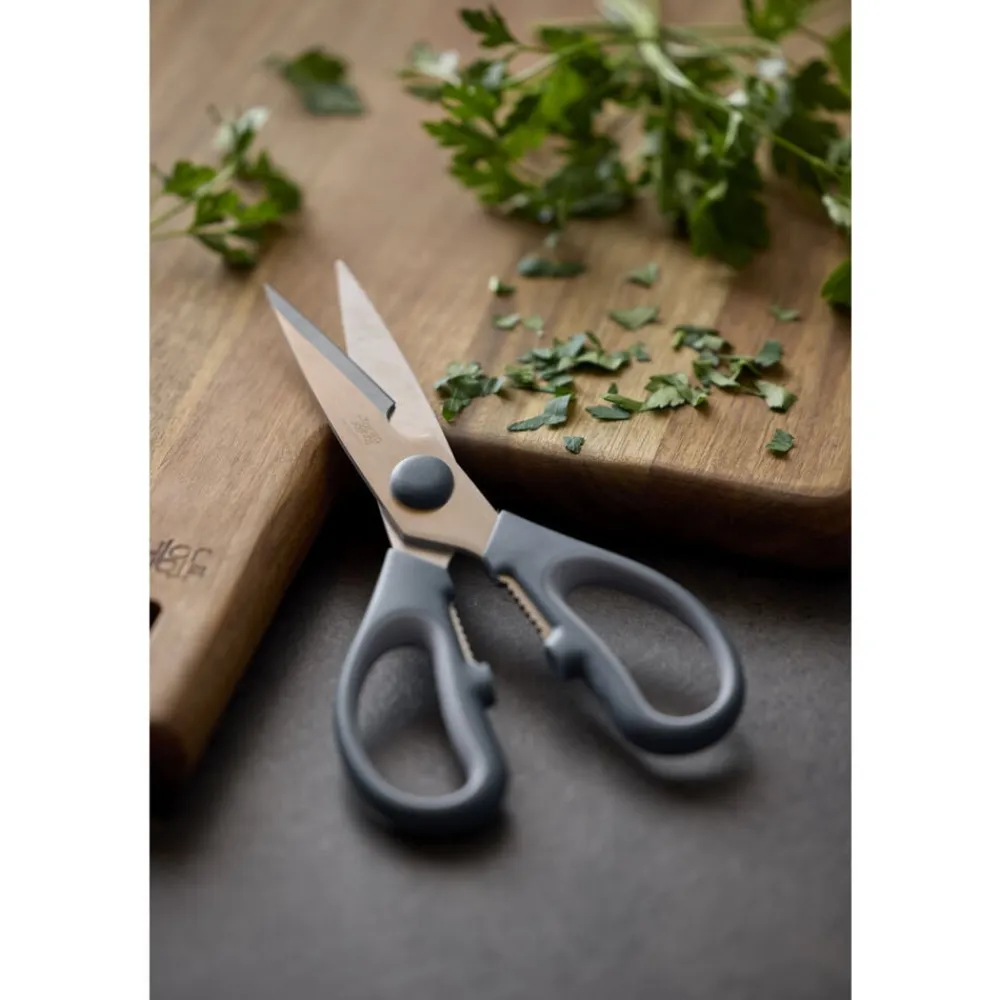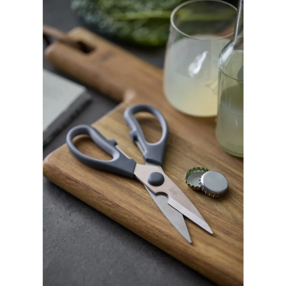 Kompakt køkkensaks med blade af rustfrit stål og håndtag i hård plast. Saksen har en nøddeknækker i håndtaget og kan helt enkelt skilles ad i to dele, så den er langt nemmere at gøre ren og holde hygiejnisk.