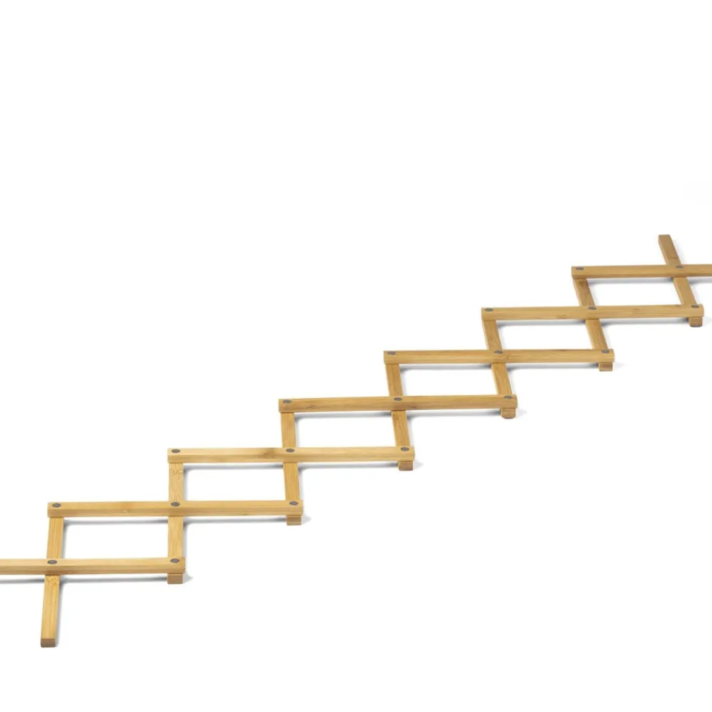 Superfleksibel bordskåner i bambus. Bordskåneren kan trækkes ud til præcis den størrelse, du har brug for. Den kan passe til en enkelt gryde, og den kan trækkes ud til 1 hel meter, så der kan stå flere gryder og skåle ved siden af hinanden. Bordskåneren er også perfekt til store fade og lange tapasbrætter.